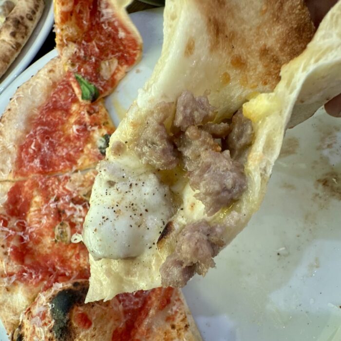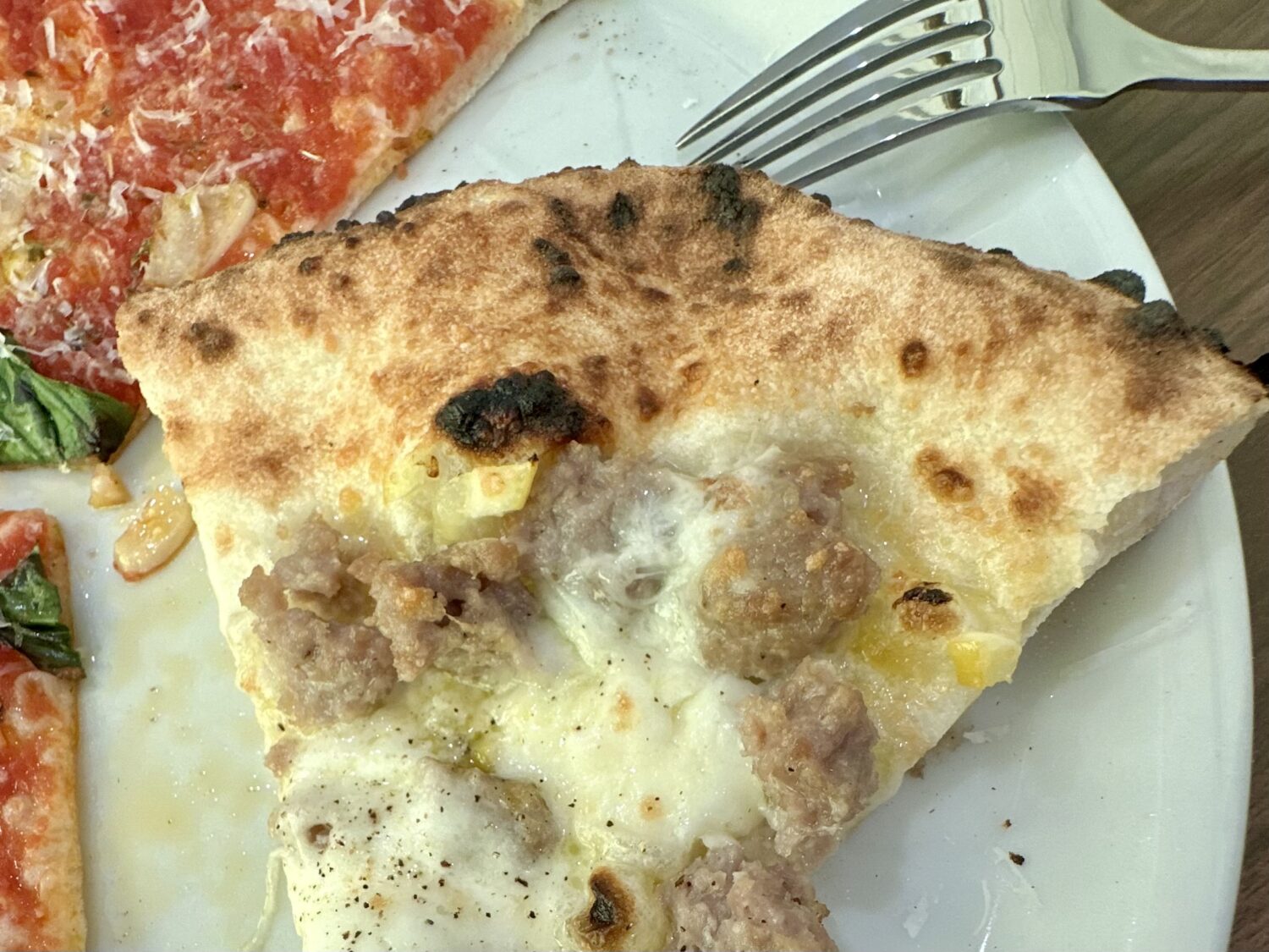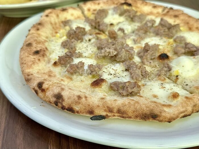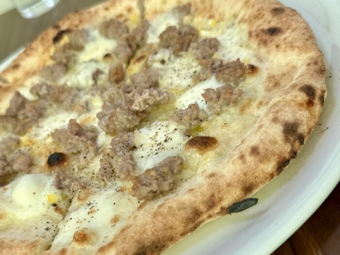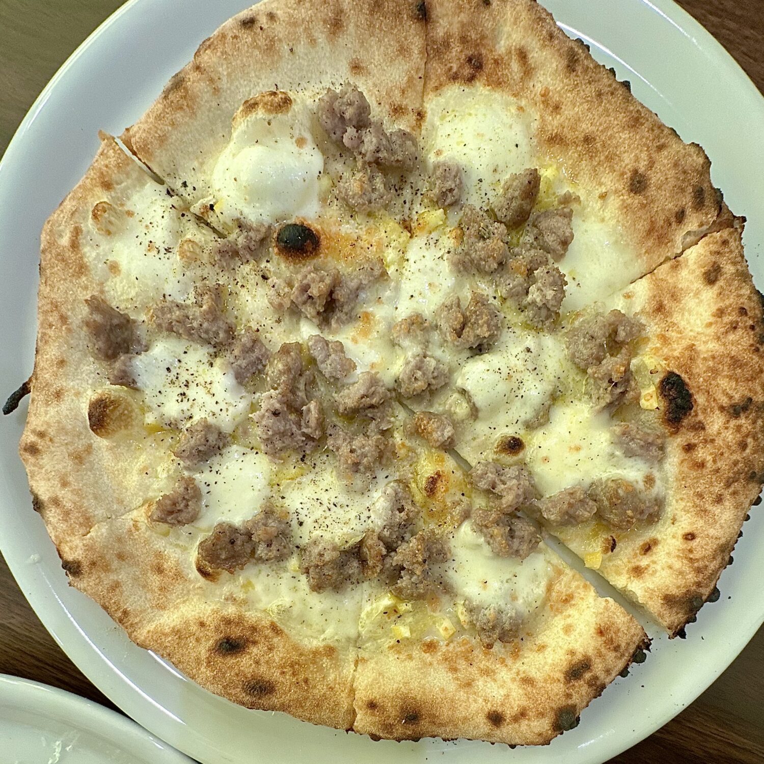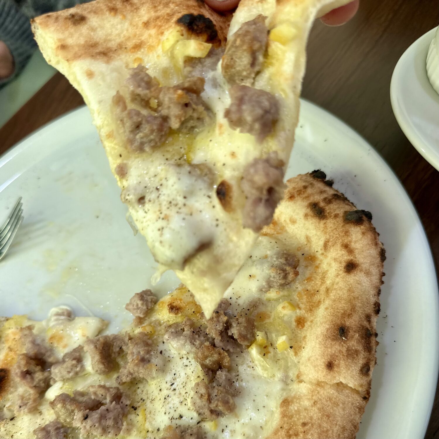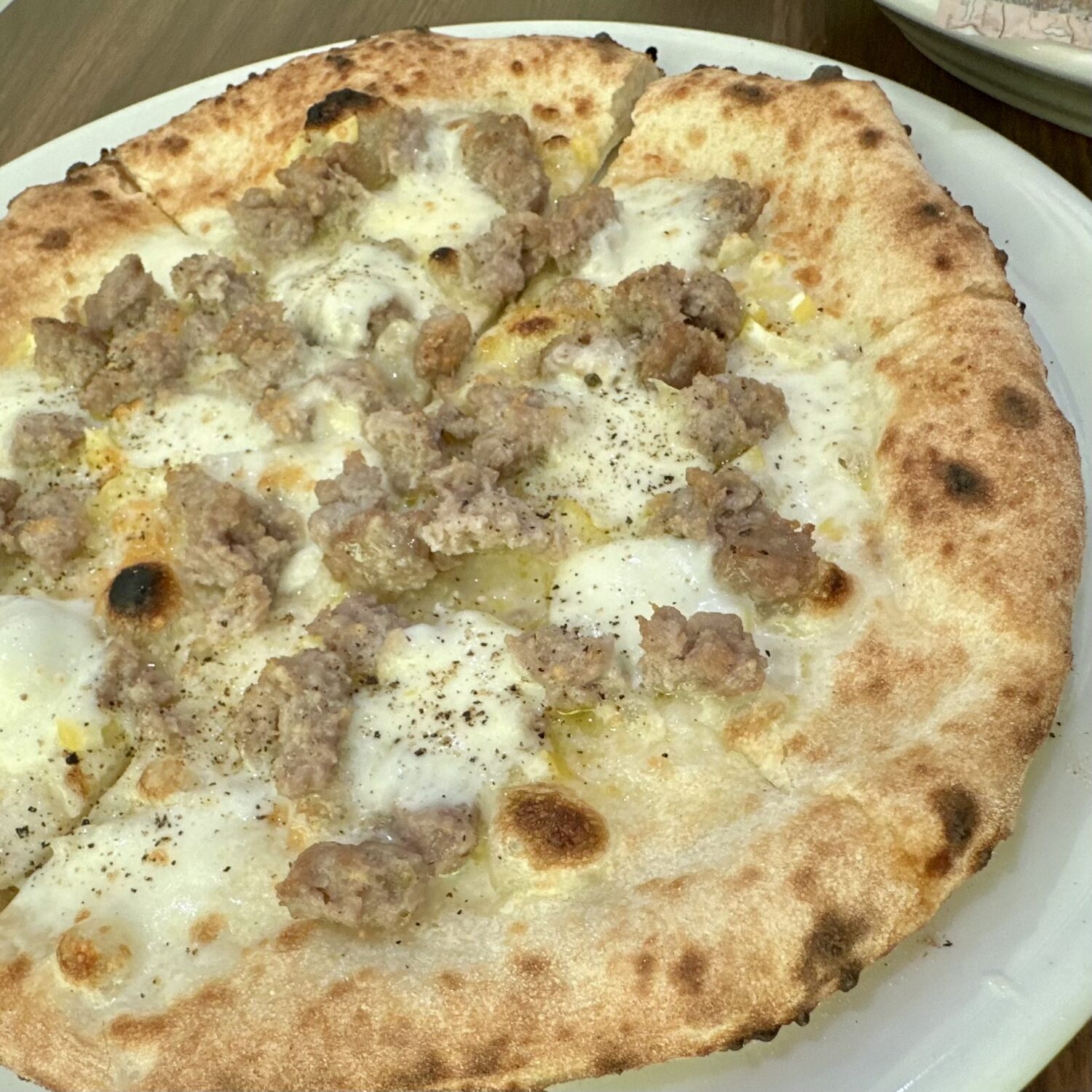 ”サルシッチャ”なる生ソーセージの食感と弾ける旨味とモッツァレラとグラナバダーノの豊かな塩味、そして爽やかなレモンの香りですっごいうまい