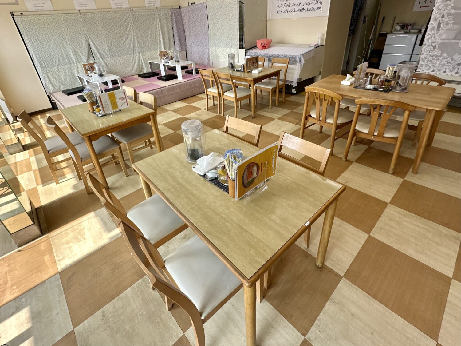 店内は入って右手にカウンター、左手側にテーブル&小上がりと全方位補完かつ開放的