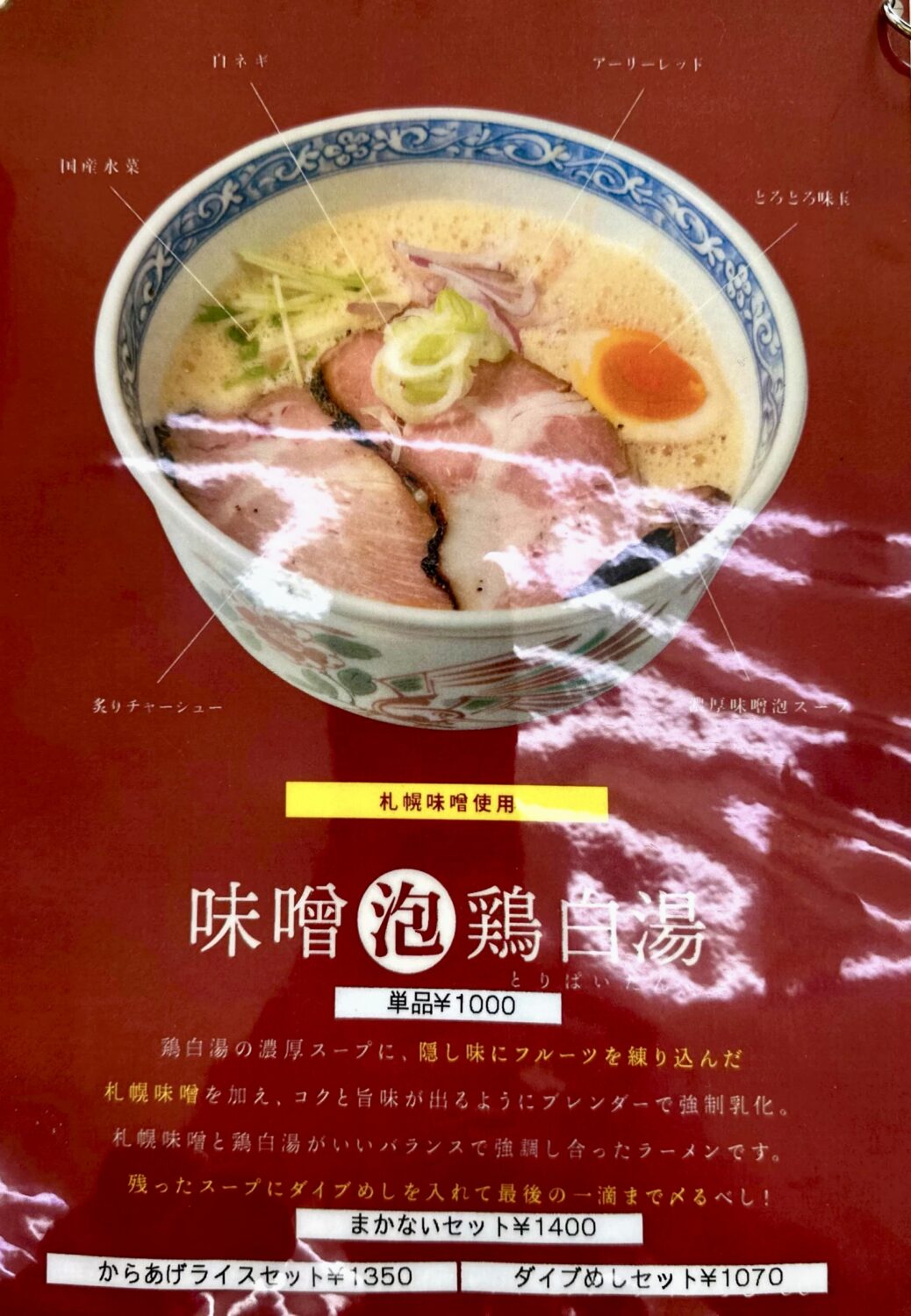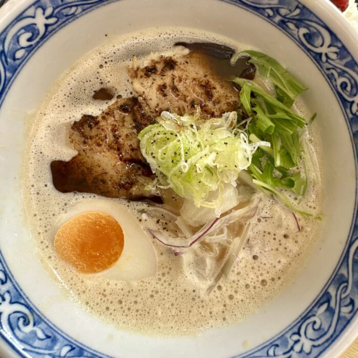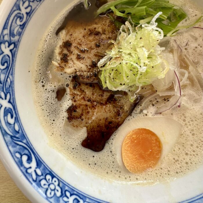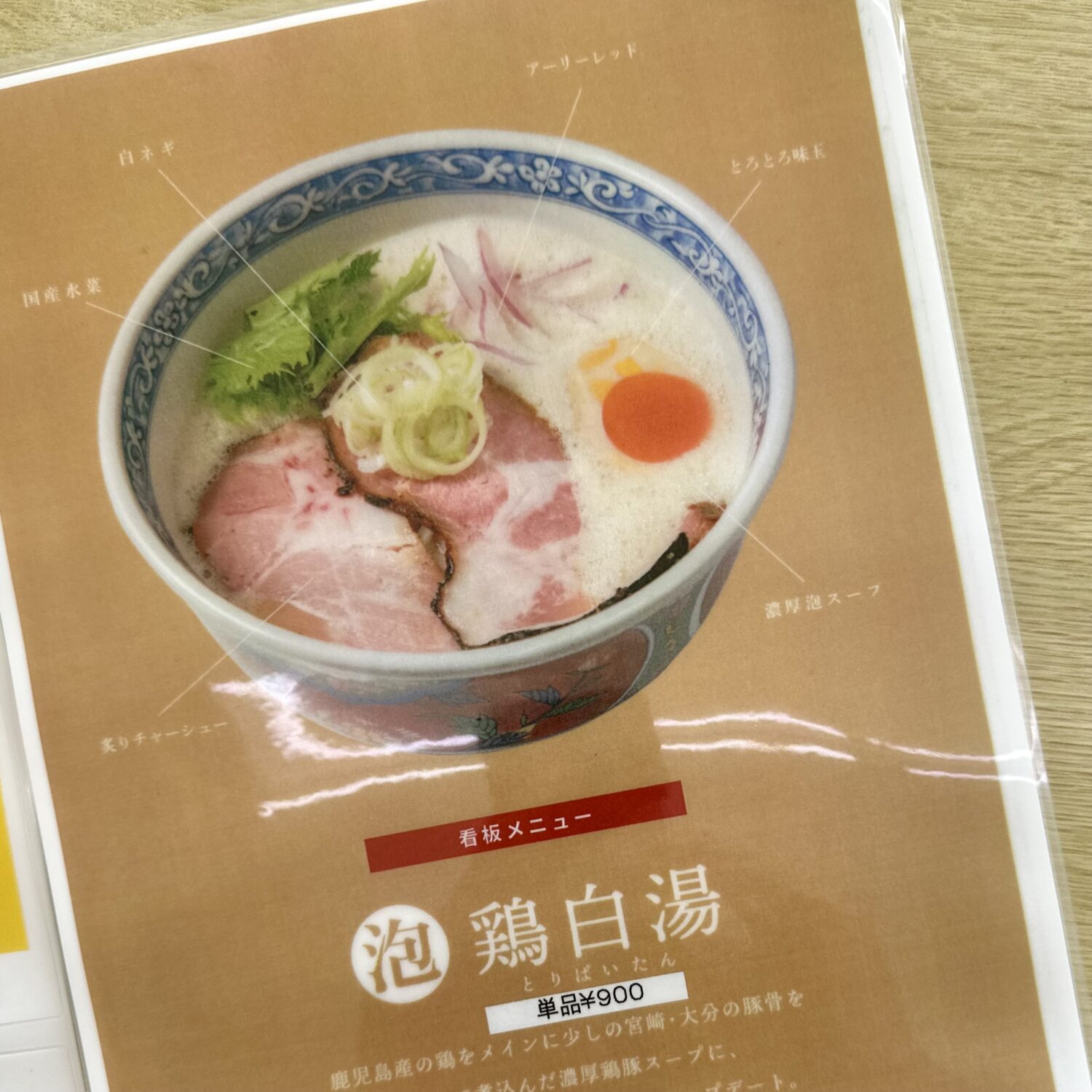まずこちら、オツレサマチョイスの新店自慢の看板メニュー「泡鶏白湯 ¥900」