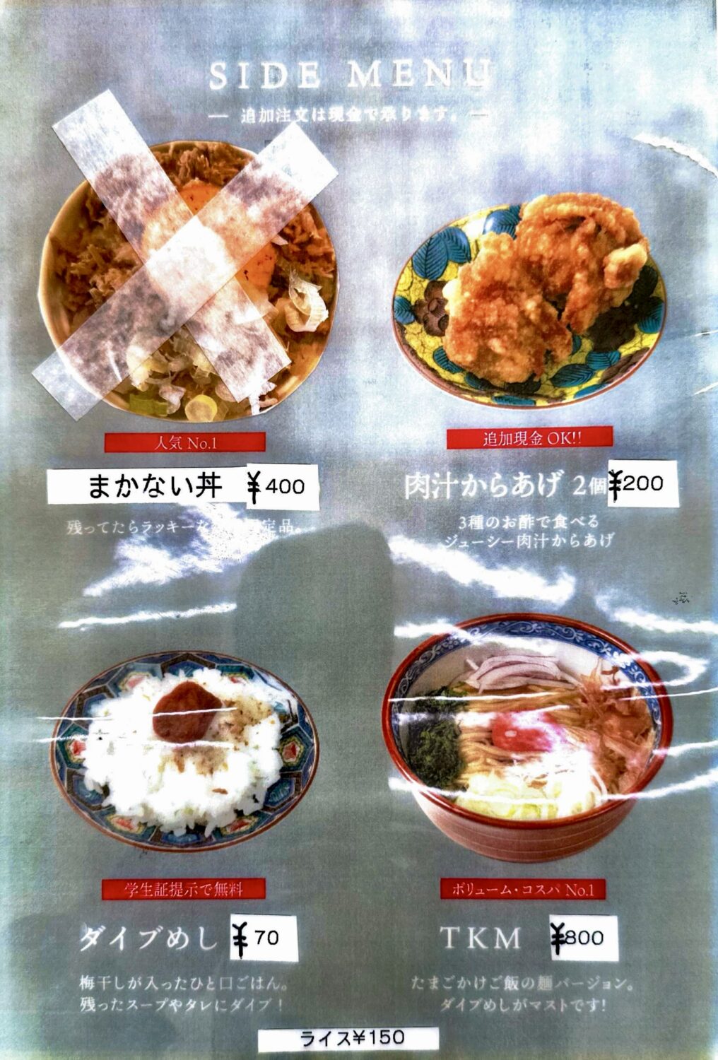 必須は〆の【ダイブめし】税込70円、これやるかどうかで満足度はもちろん、明日以降の運気までえーっとえーっと、