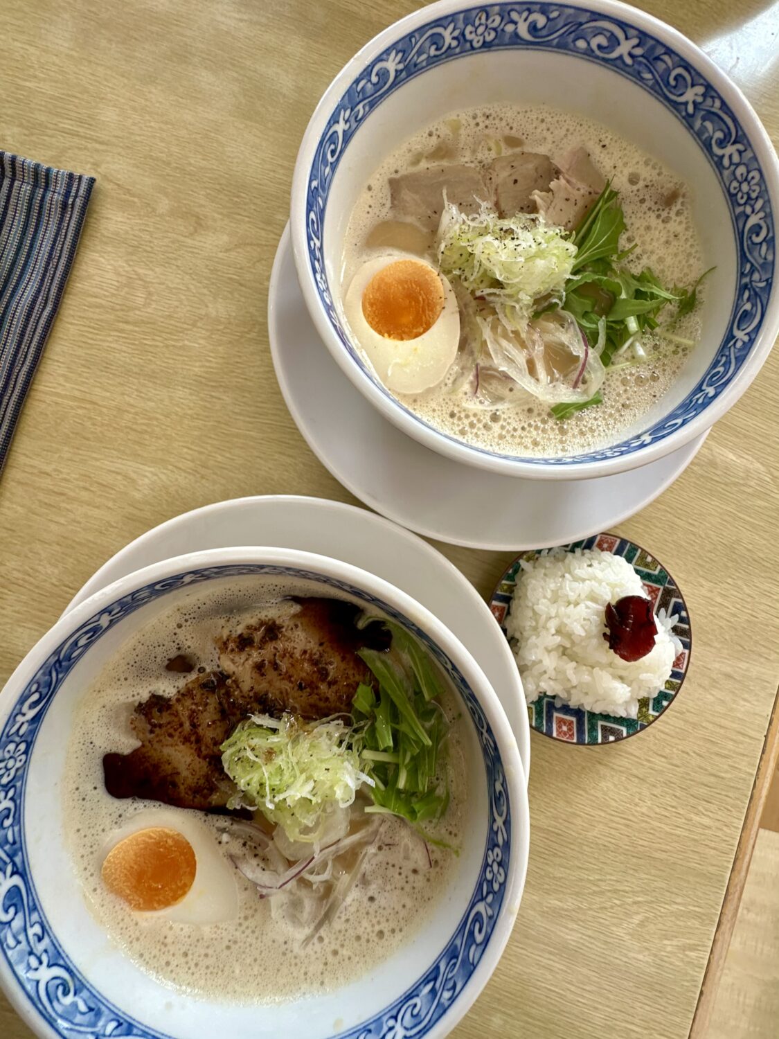 ノントッピングでもなかなか豪華な乗せ具たち、とくにネギと紫ネギの共演なんて普通に暮らしてたら見れない奇跡