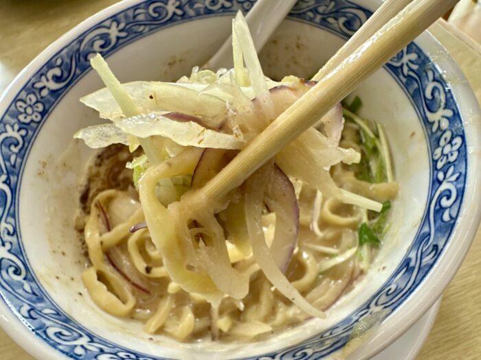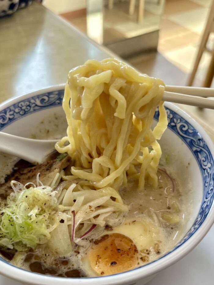 このスープに合うようにと特注してるという専用麺、さすがのちょんどいい相性っぷり