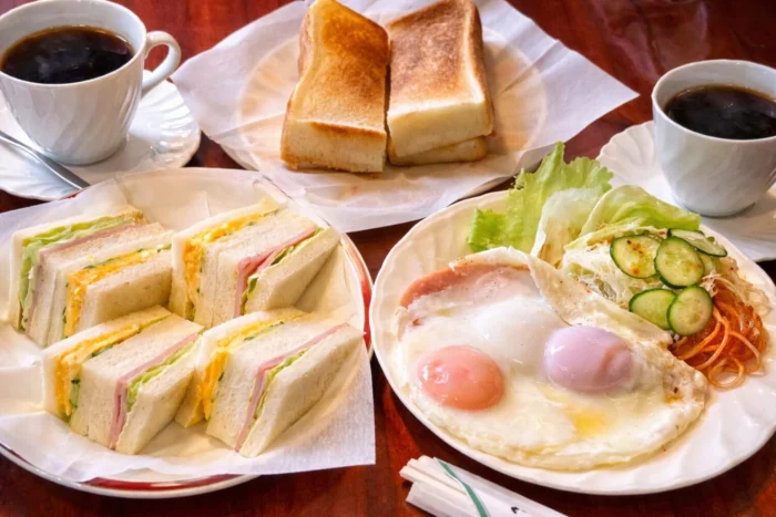 浅虫温泉駅前でゆったりモーニング〜【喫茶&お食事 ペクテン】のハムエッグとミックスサンド