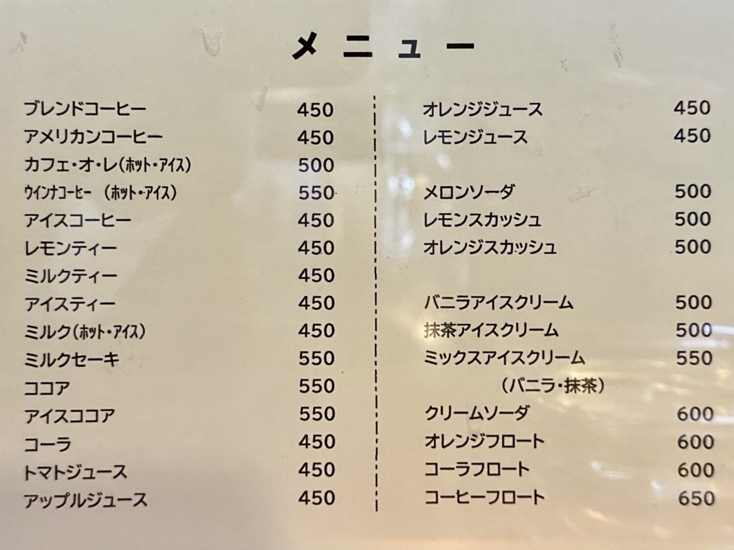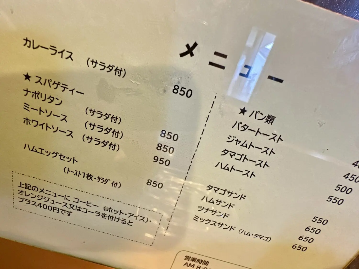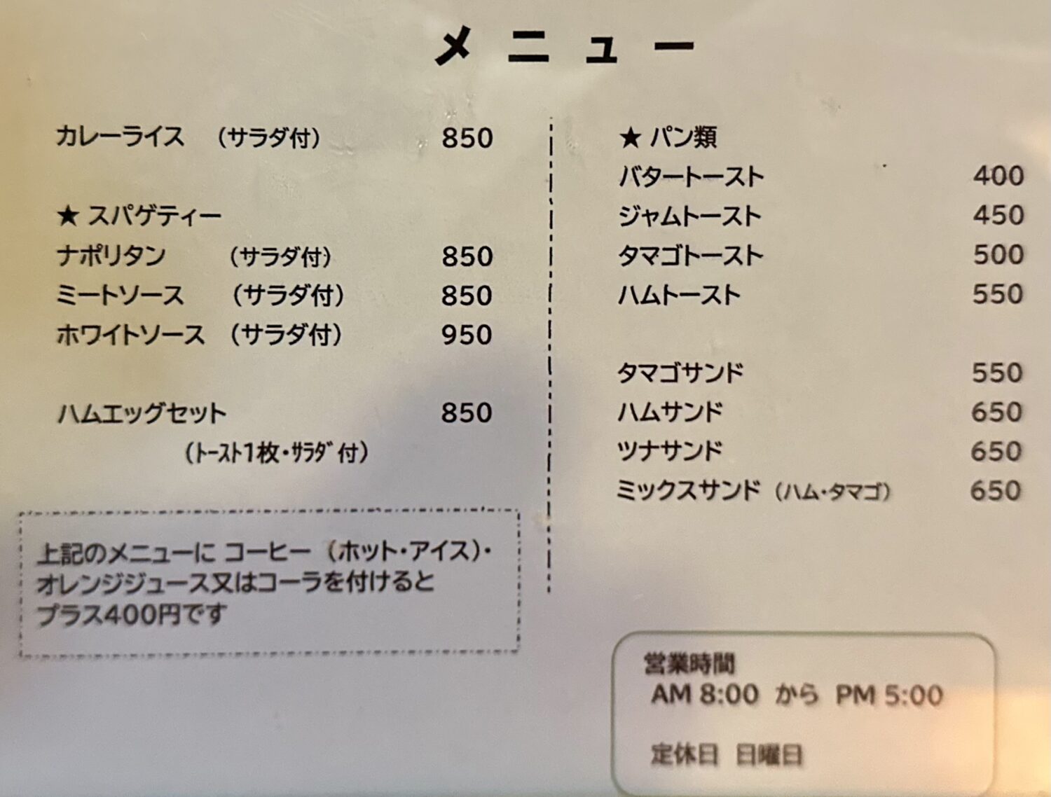 もちろんその脇にはブラックコーヒー、軽食類と一緒に頼むとちょっぴりお得な400円