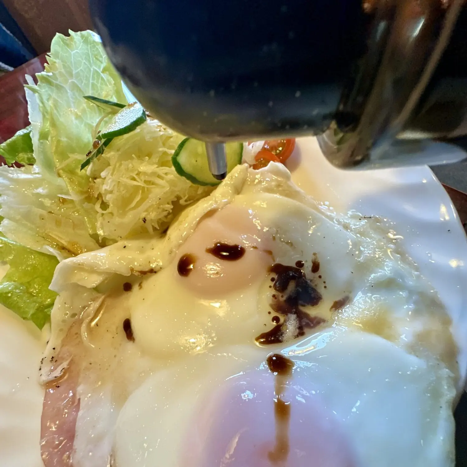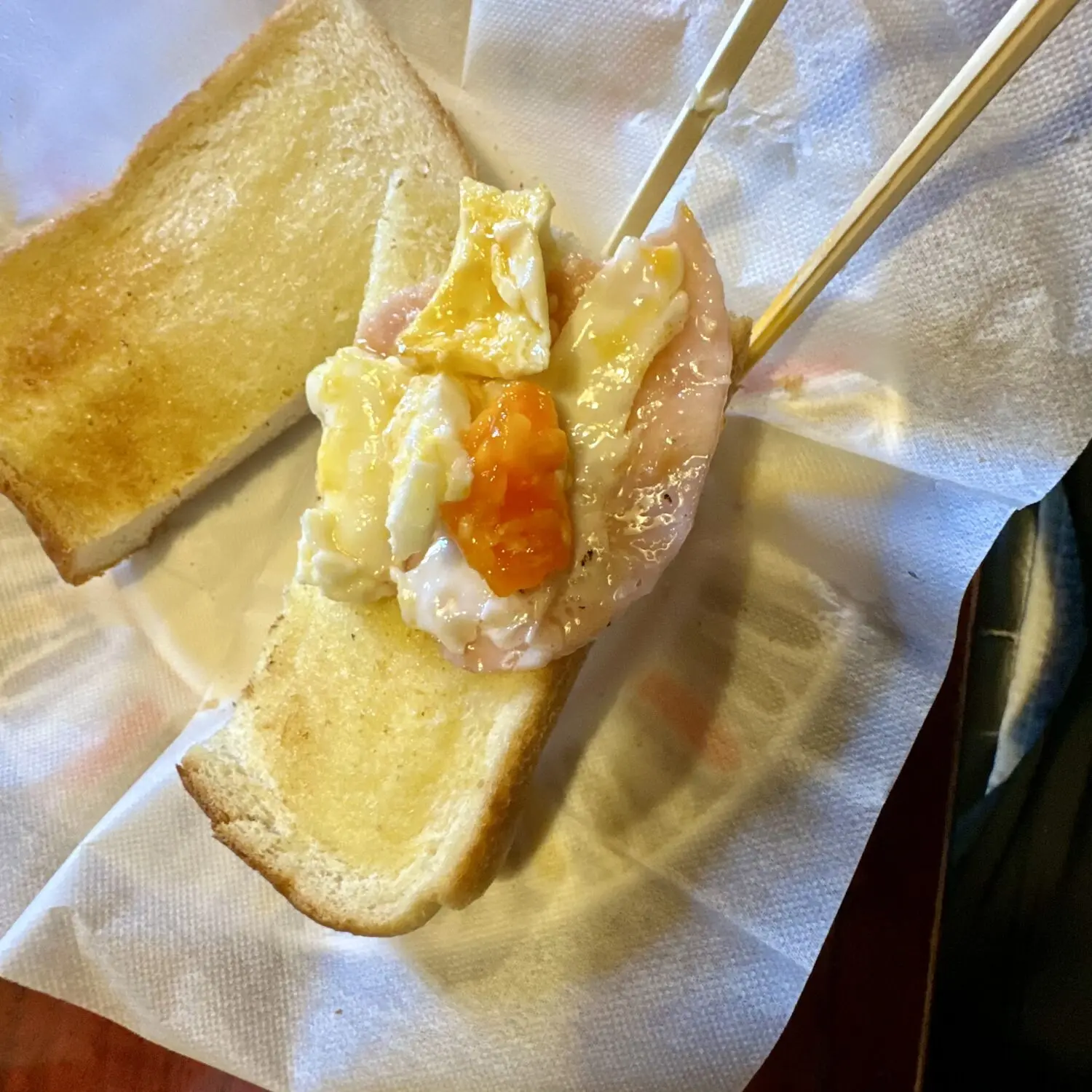 なぜ乗せるか?、だってそこにパンと目玉焼きがあるんだぉん(*థ౪థ)