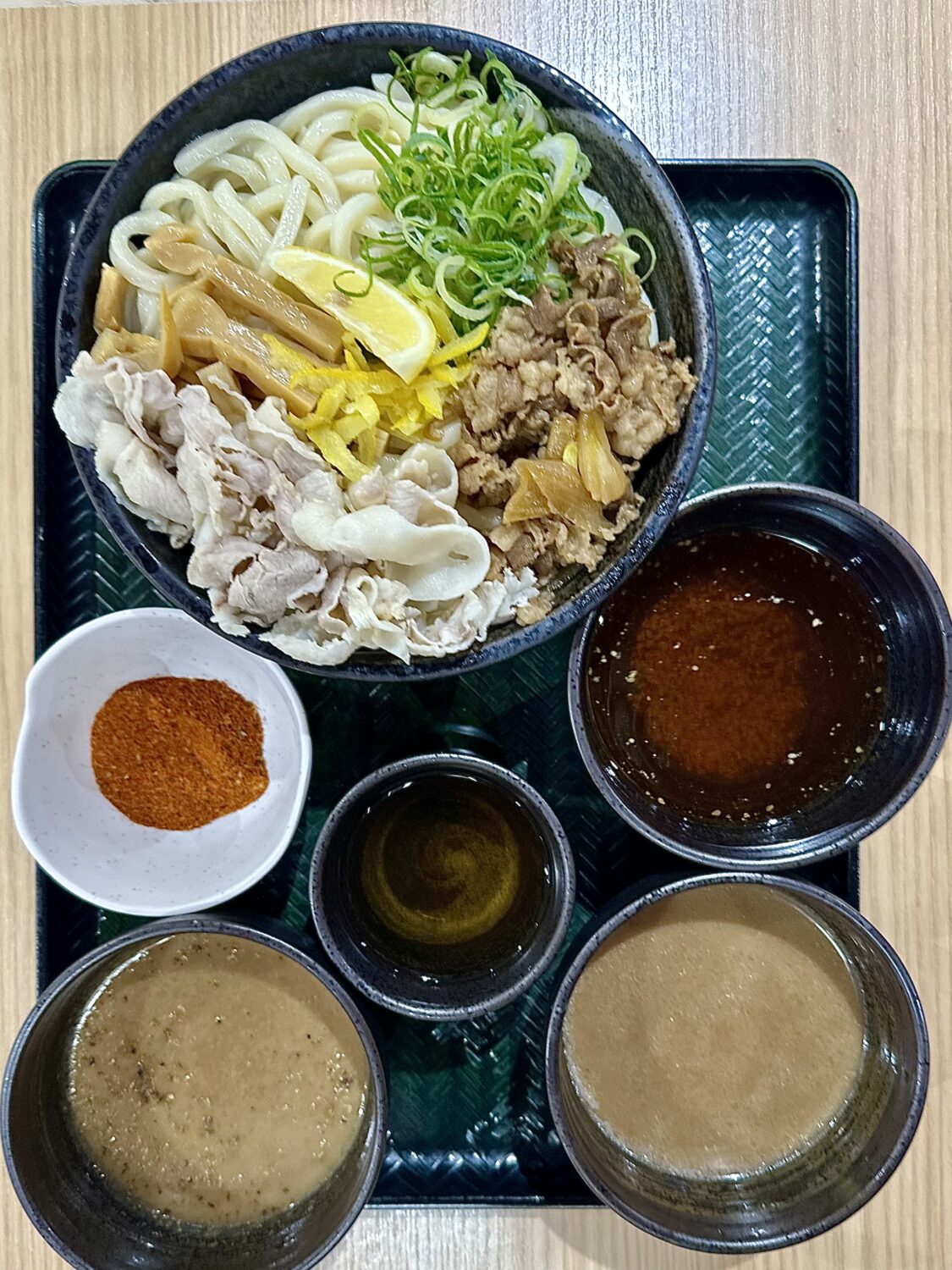 しかも「つけ麺フェア」で提供される三品目(魚介豚骨・ゆず牛肉・辛魚豚骨)、それらの乗せ具を全部ここに盛られちゃってるとかヤバみどころかウダデみつよつよ