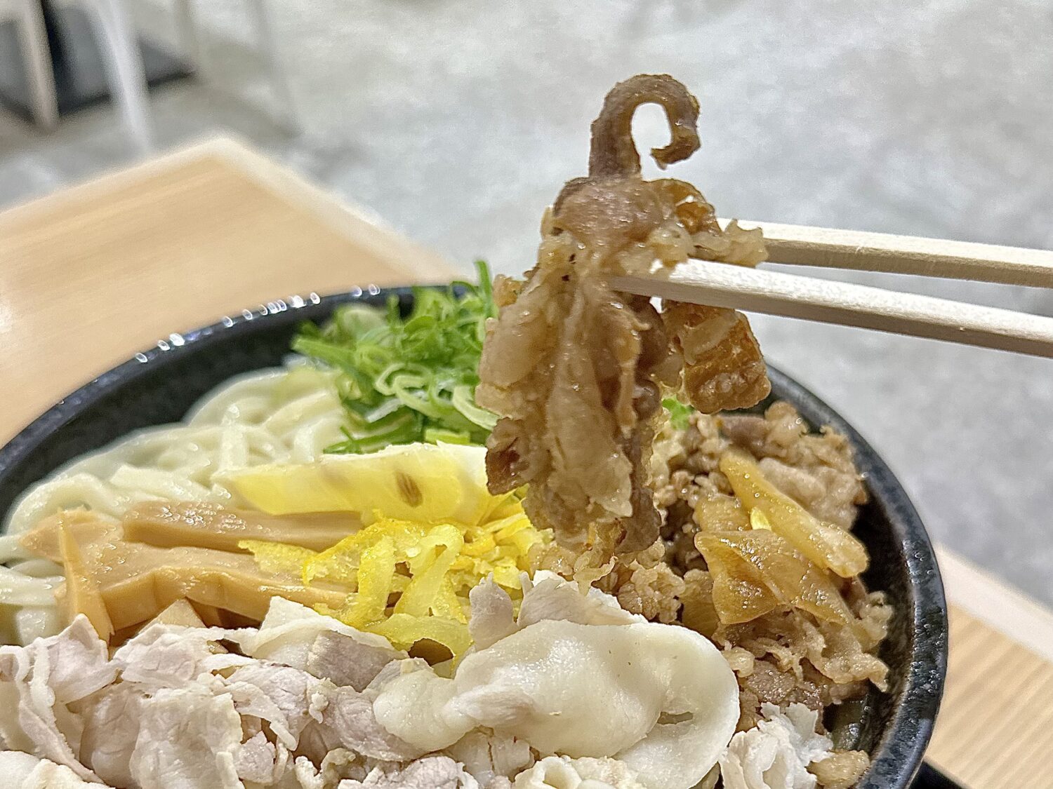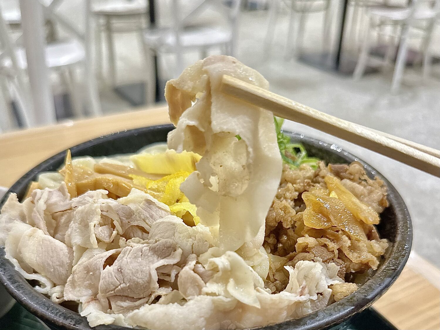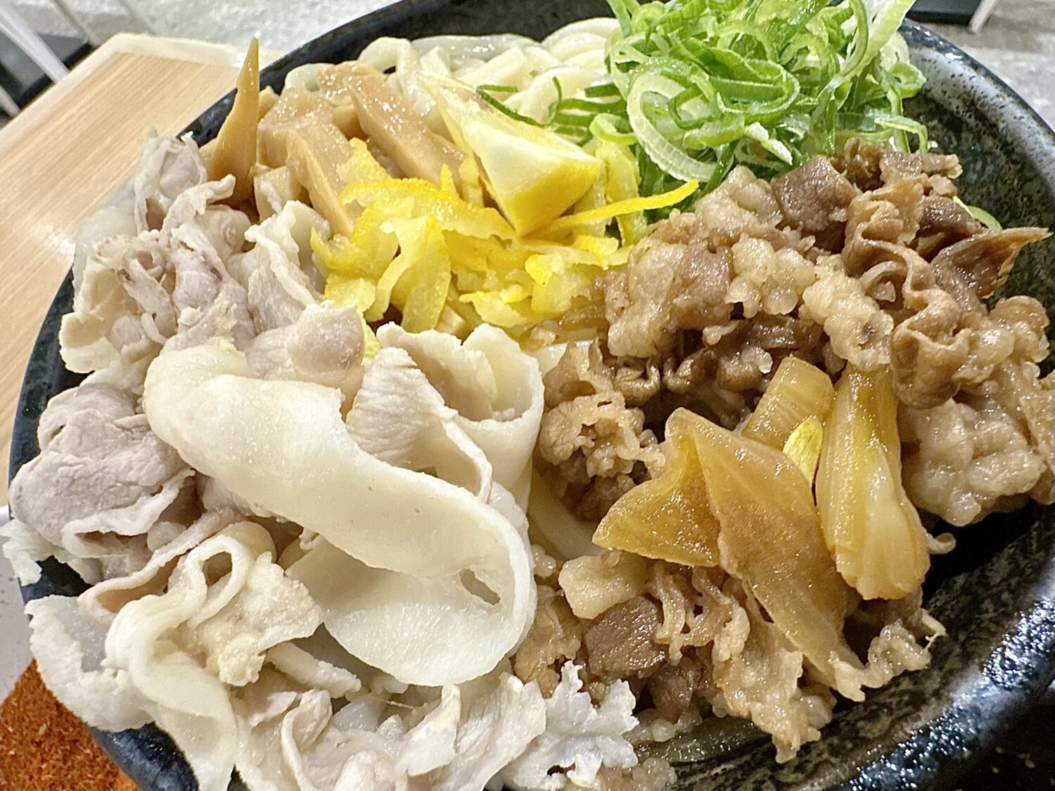 「魚介豚骨」の豚肉と「ゆず牛肉」の牛、本来なら交わるはずのない両者を一気に喰えるのもメガならでは