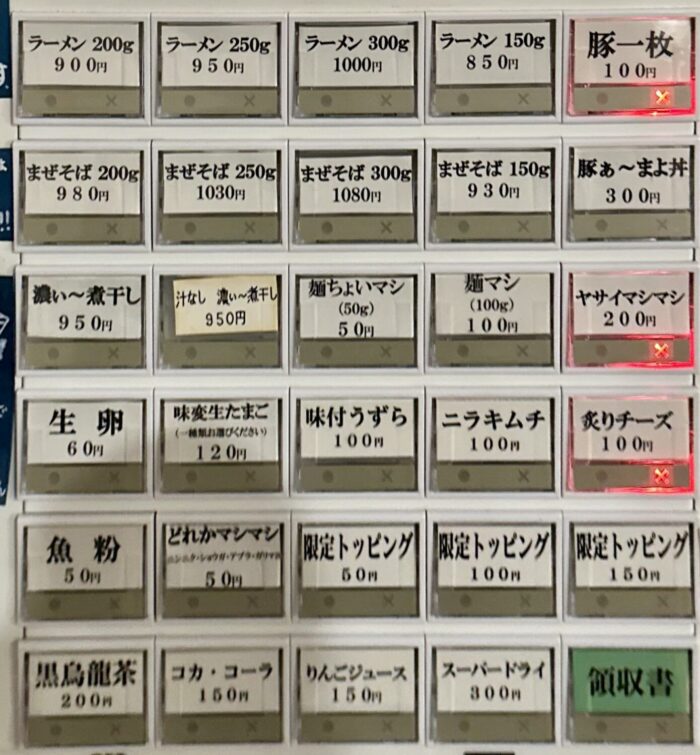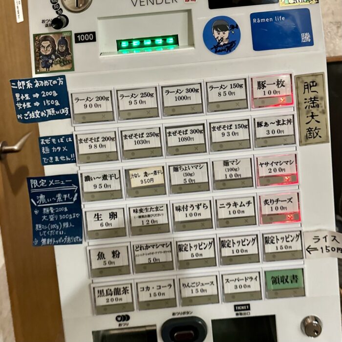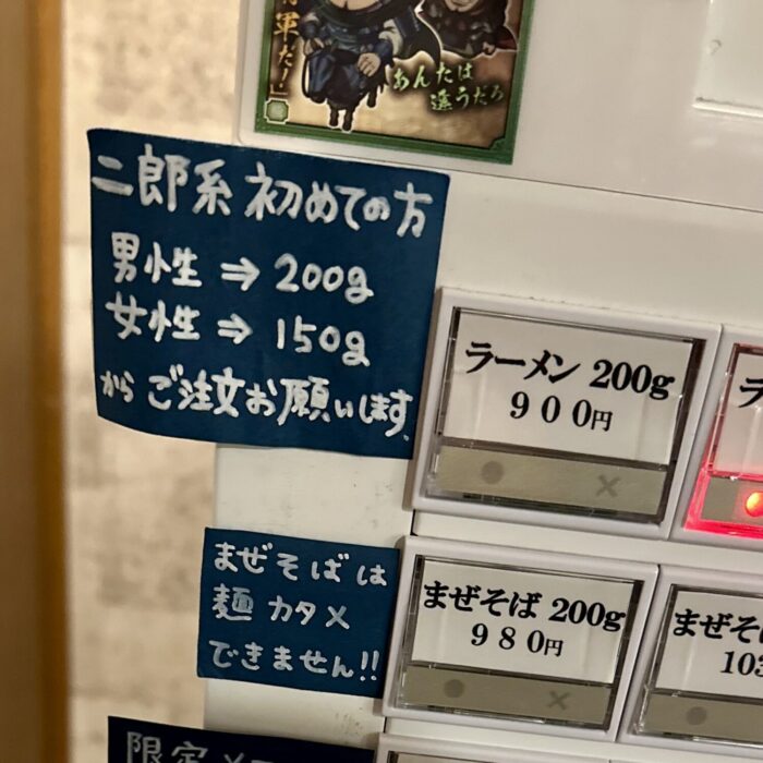 っておっふ、しばらく来てないうちに麺量グラム別のメニュー構成なっとるやんけ、エフリコいでMAX麺量いきたくなる自分にオエッってなるやづやんけლ(゚д゚ლ)