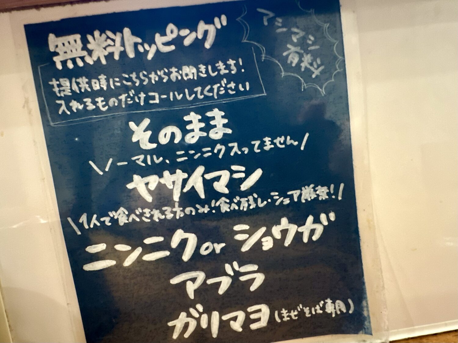 ありゃ、前はヤサイマシマシも有料トッピングのなかにあったんだけどなぁ、せっかくだからお遊び厳禁のヤサイマシマシいきたいなぁ、
