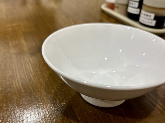 ドンブリ半分だけをひっくり返すというハイボールマンオリジナル技、飽きを誘いやすい食感やクタ感の同時進行をあえてバラつかせることで、最後まで美味しく食べようとする秘技である