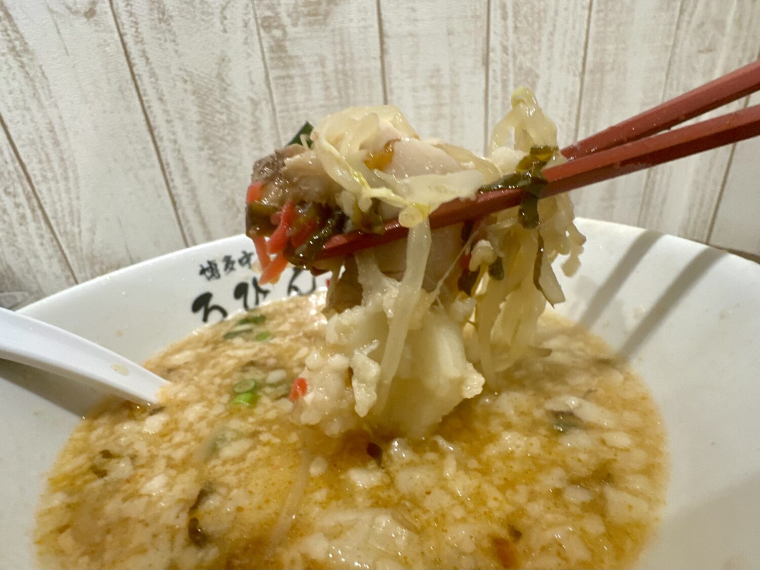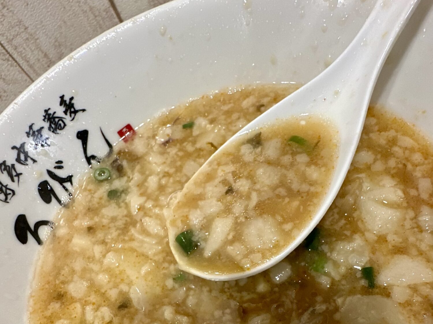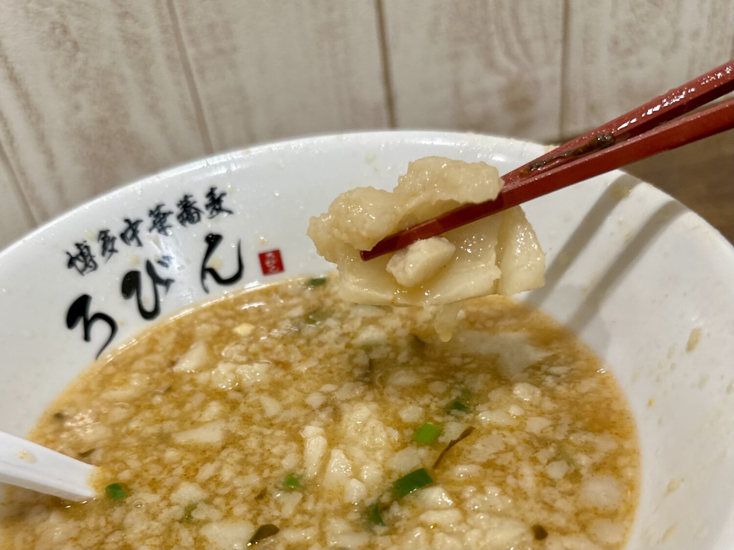 スープは豚骨の旨味が上品に香る、見た目よりおとなしめの優しげなやづ。
