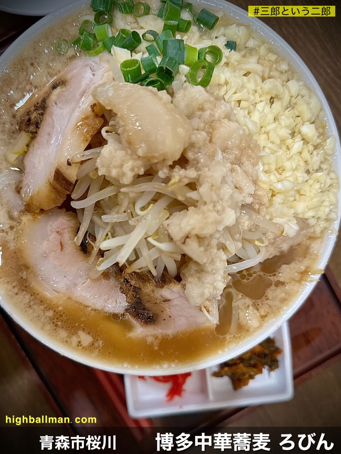 晩飯難民ハイボールマン、こりゃ大変大変とやってきたのは青森市桜川【博多中華蕎麦ろびん】。