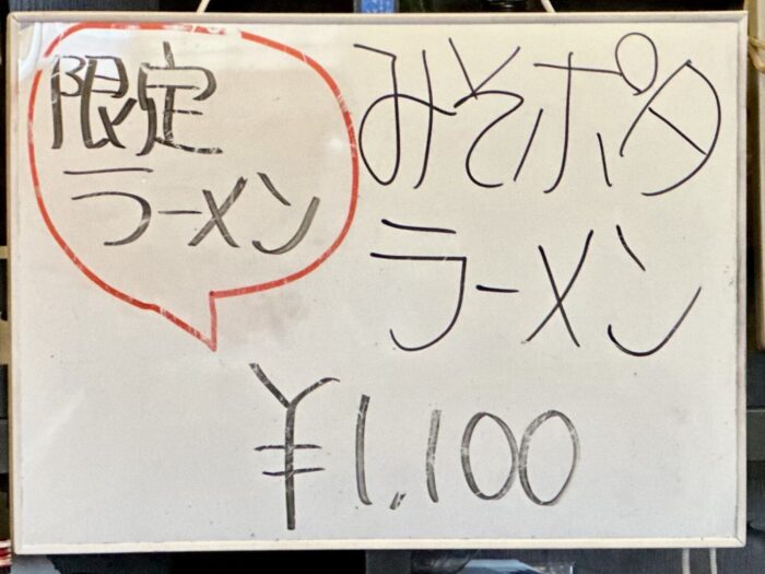 なんてったってそこはザ・居酒屋、呑みたい気分をぐぬっとこらえ、オーダーするのは限定メニュー【みそポタラーメン】税込1,100円。