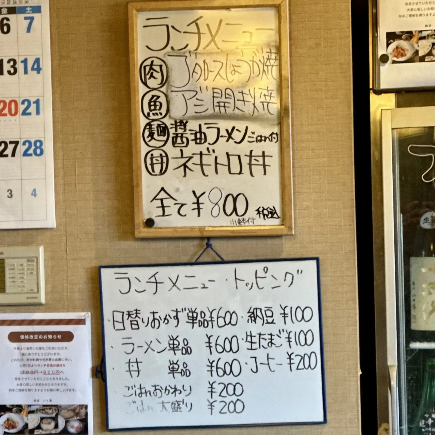 なんと居酒屋ランチもやってたイヂバ、しかも一律800円で肉も魚も麺も揃ってるっていう嬉しい構成