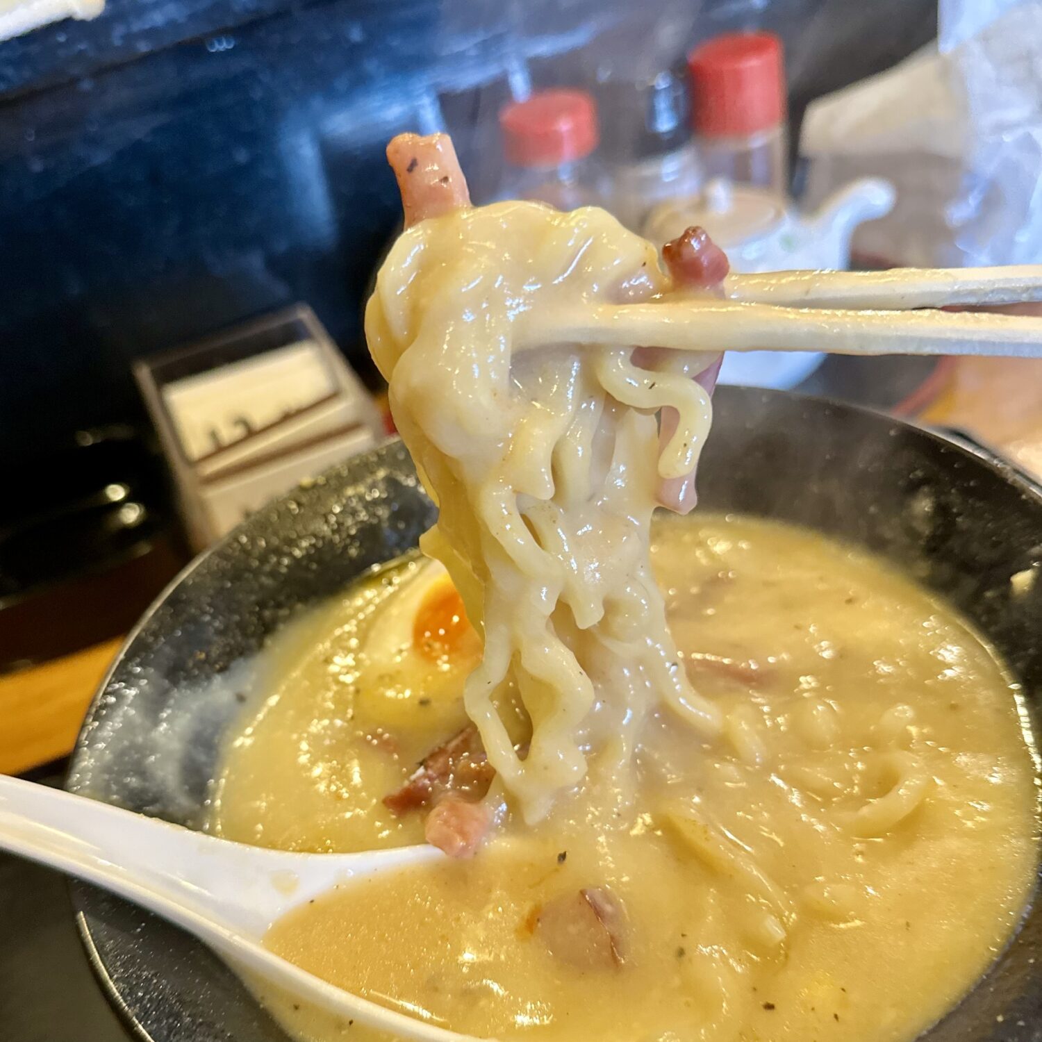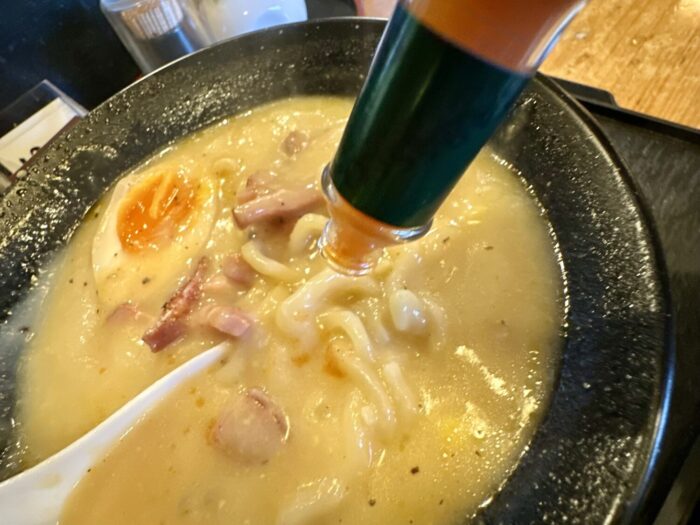 • 青森市桜川【博多中華蕎麦ろびん】の夜ラー限定メニュー「三郎」、その”オール3”を登る