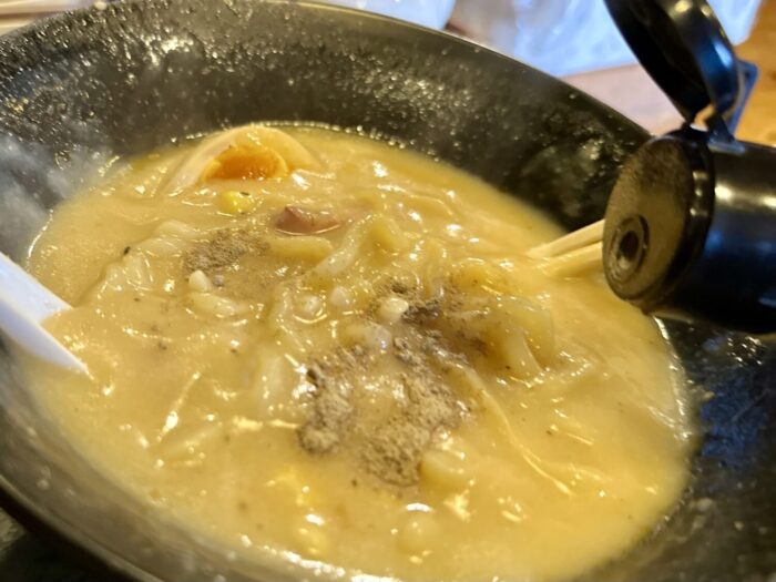 そして追いのテーブルコショー、ミル挽きのブラペなら最高だべなぁと思いつつドバッと投入