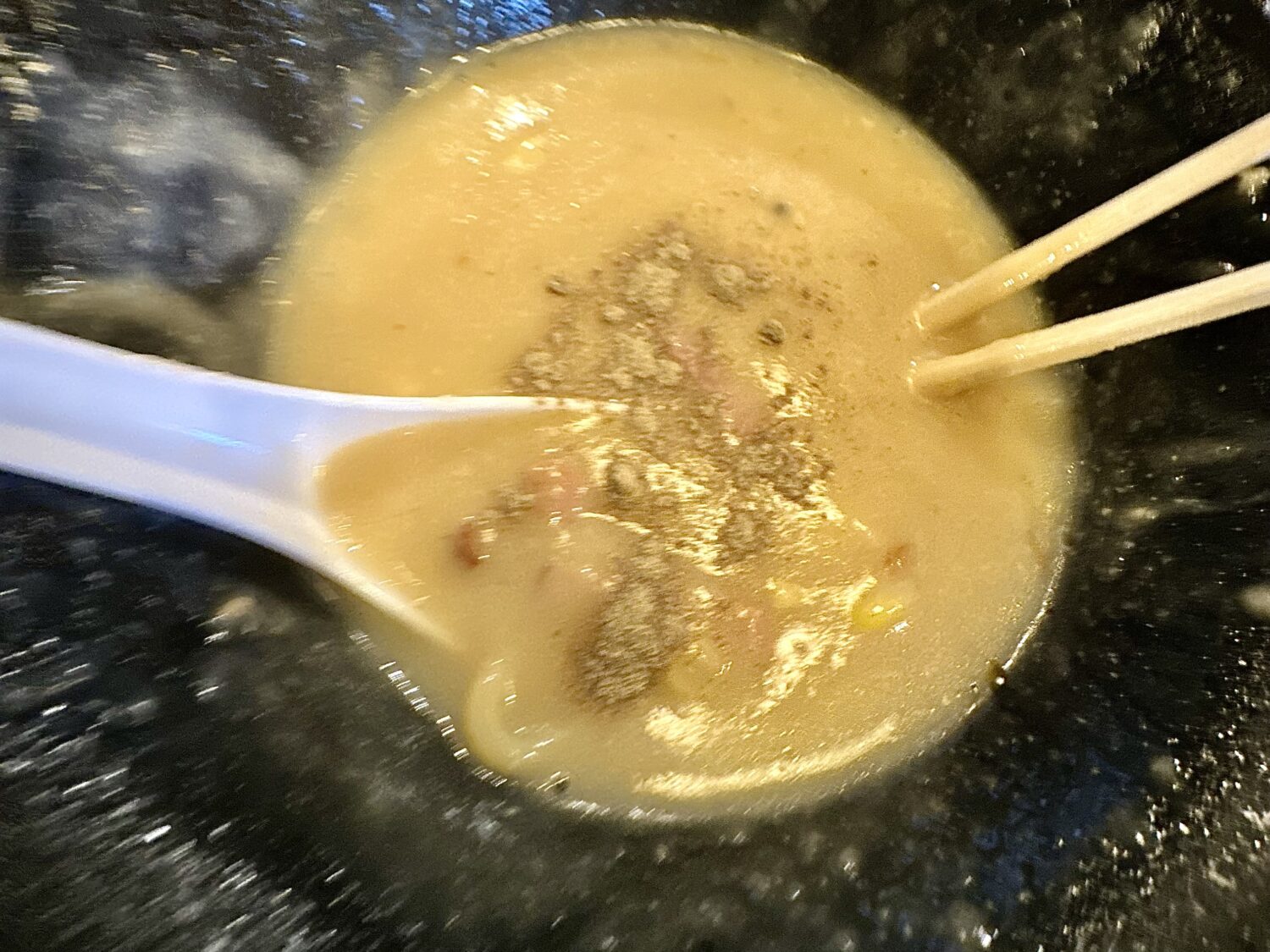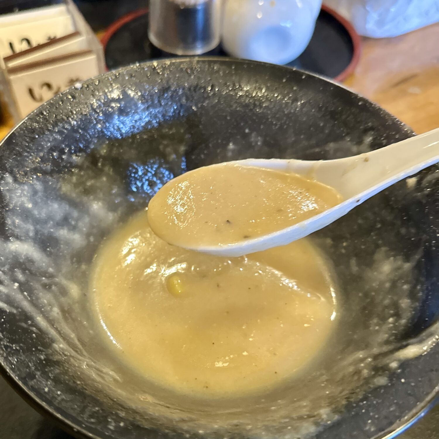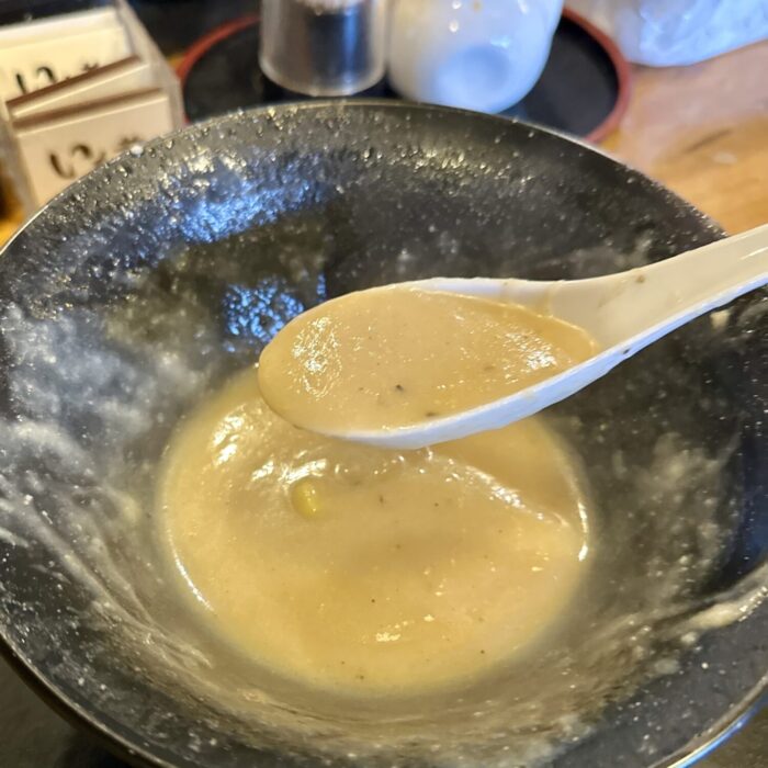 ズボリと抜いてスープをひと口。