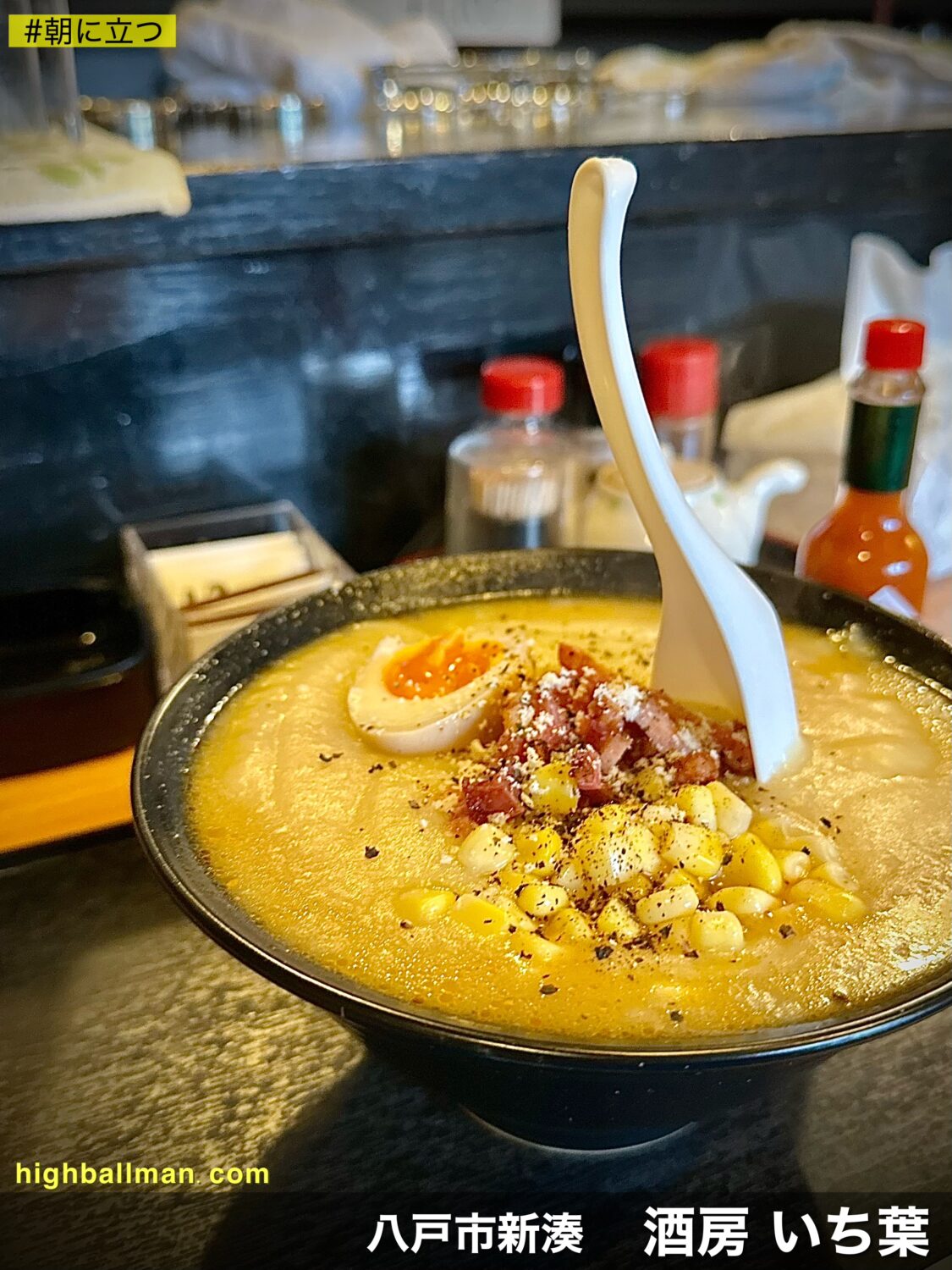 ハイボールマンが現れたのは八戸新湊【酒房 いち葉】、ほぼ毎週土曜限定でやってる朝ラー営業がその目的。