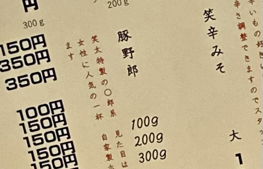 キャッチコピーは「笑太特製の○郎系」。