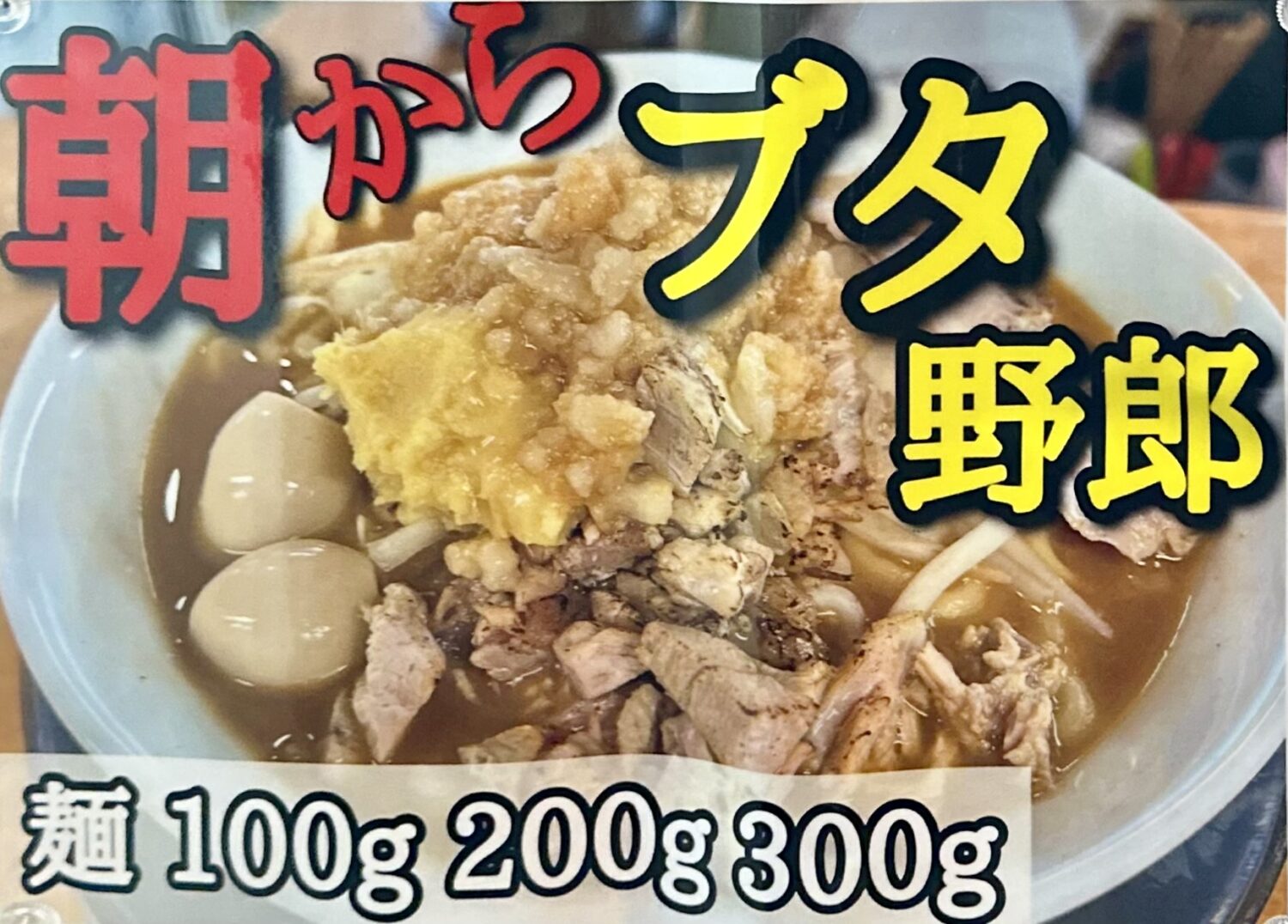 オーダーはもちろんアレ、背徳の限りを尽くす生活習慣病への特急券【朝からブタ野郎】税込1,000円。
