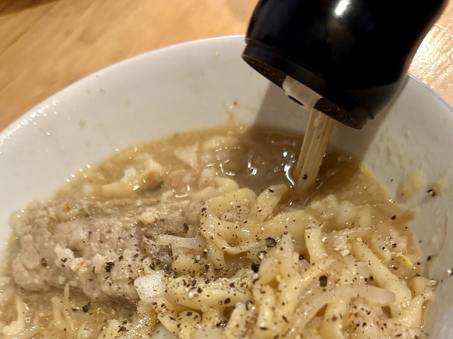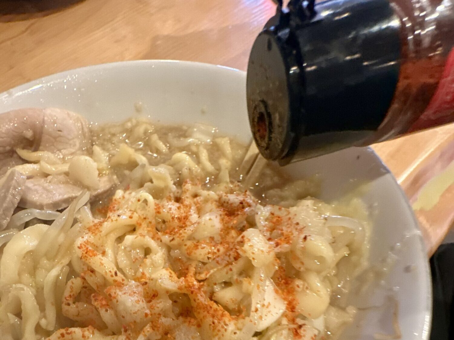 きっと大量のセアブラも気にならないように、っていうこの酢の要素、それをあえて薄めるべく調味料ダブル