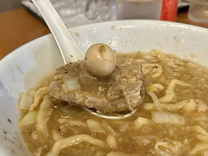 なるほどなるほど、これは「二郎系」を匂わせてるからの違和感であって、もうそーゆーの消して出せばそーゆー料理として成立するやづだ。
