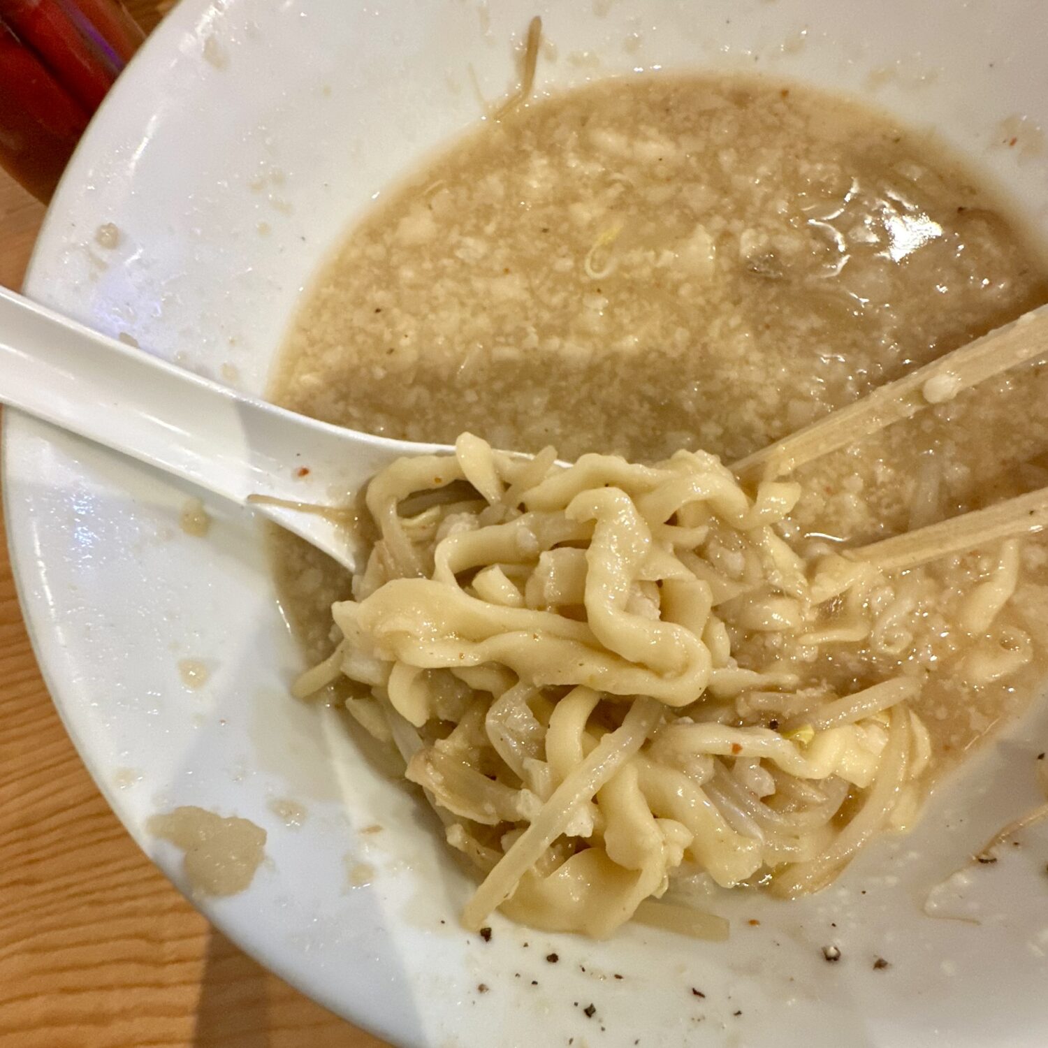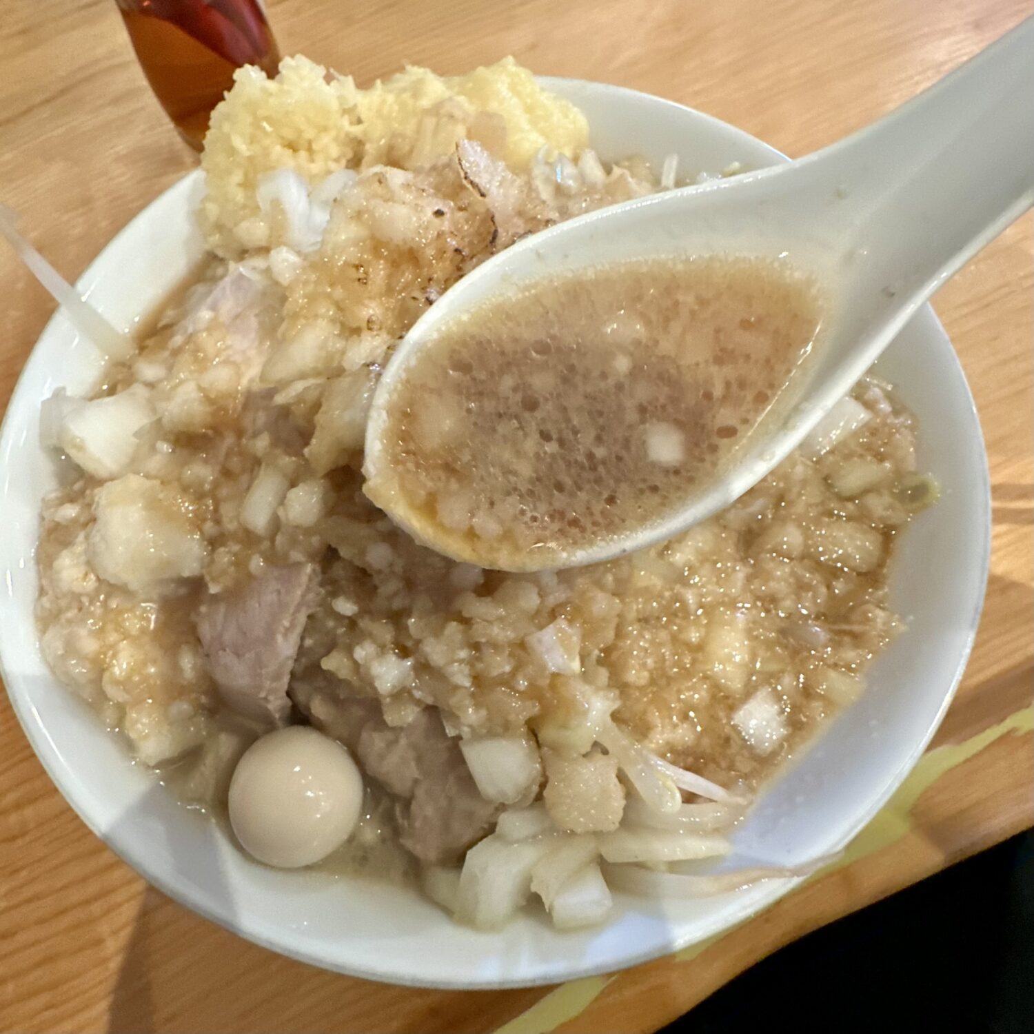 ザクタマ効果かそれとも何かかしらの酢が入ってるのか、それこそ二郎と思って飲むと違和感強めのアブラ汁