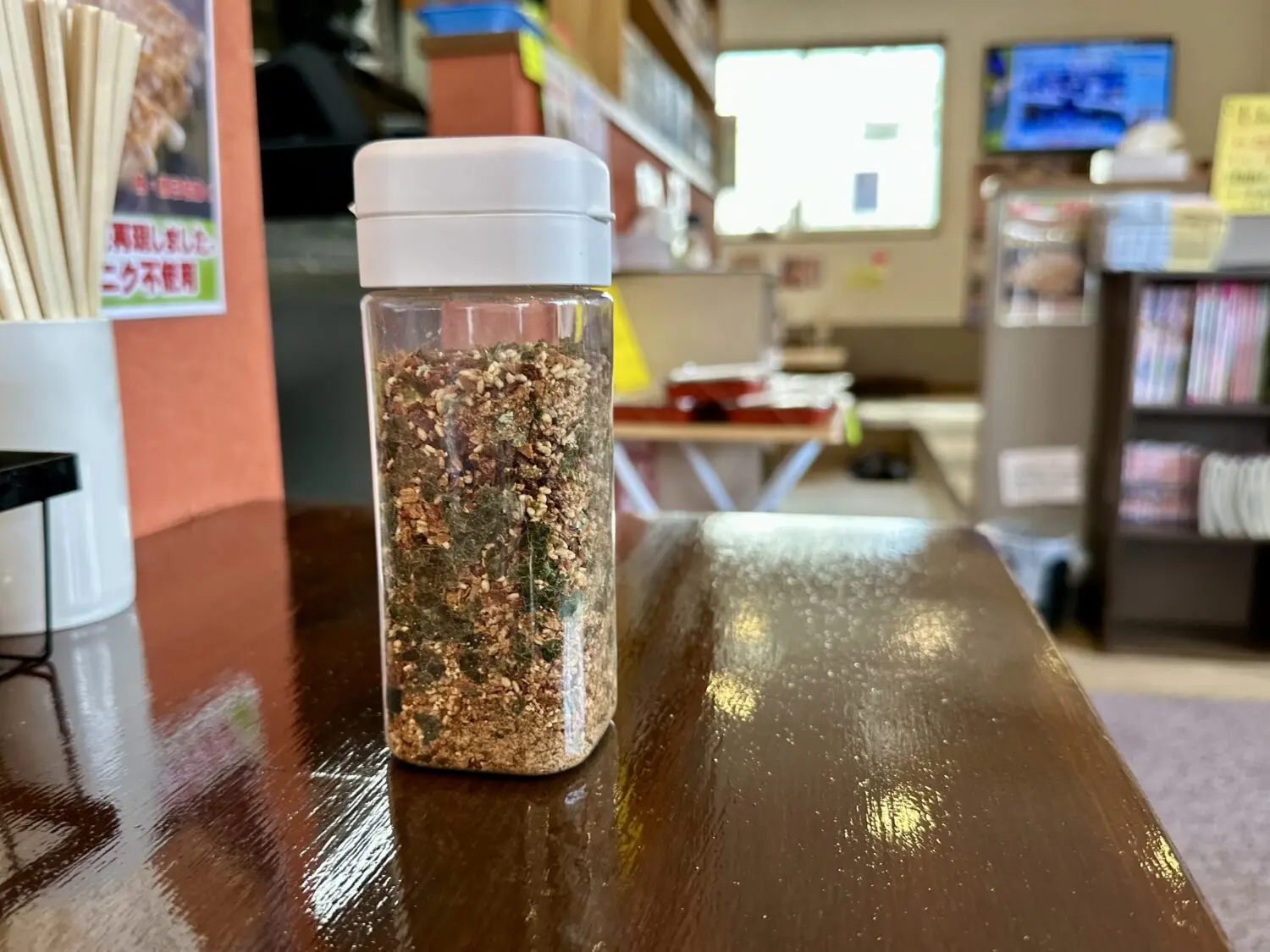 デカチューブタイプのニンニグあってラー油もあって、しかもライスの横に嬉しいふりかけもあるって心強い