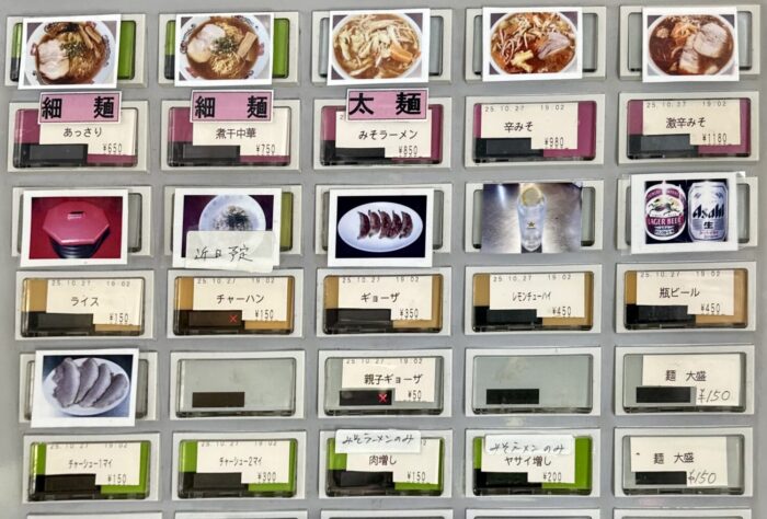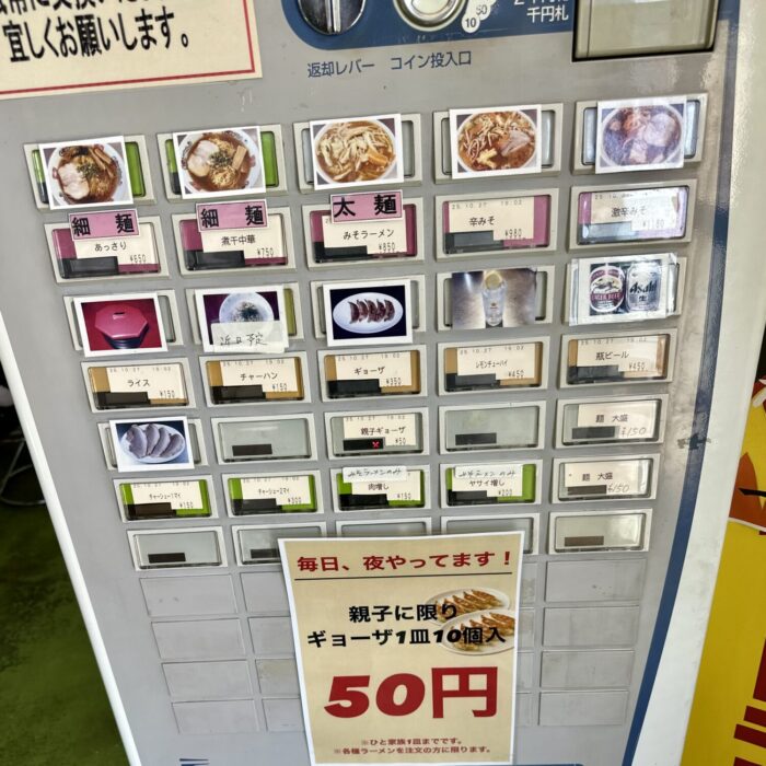 まず相対すべきは券売機、小っちゃい字と解像度低めの画像にえーっとえーっと不可避の券売機にコンニチワ(◠‿◠)☝