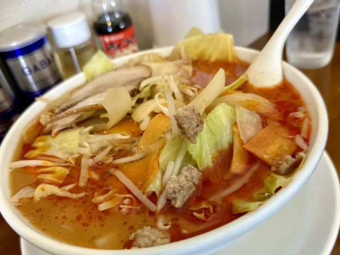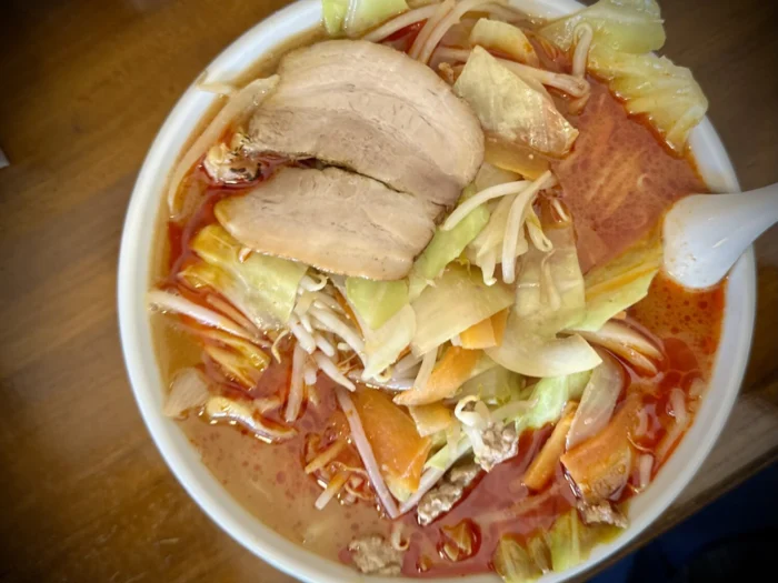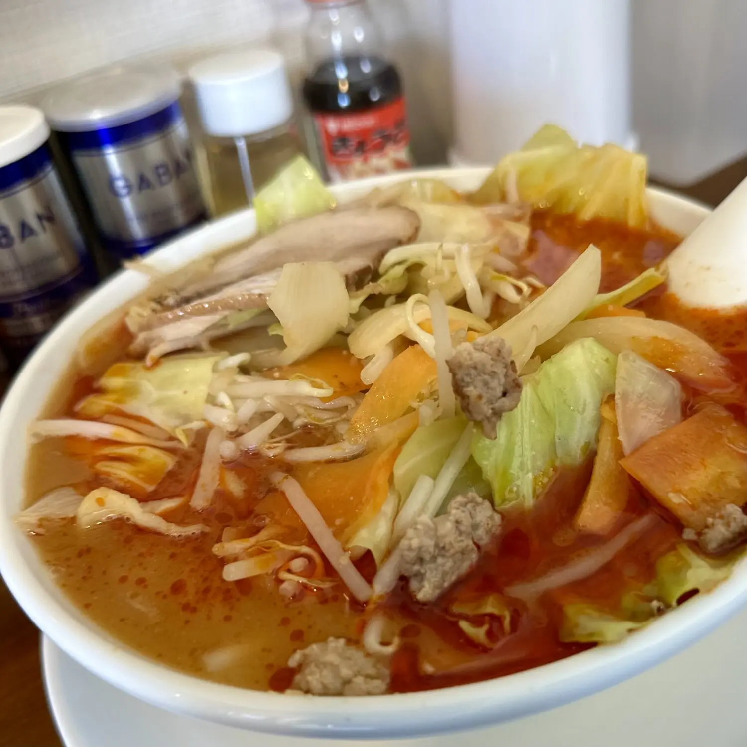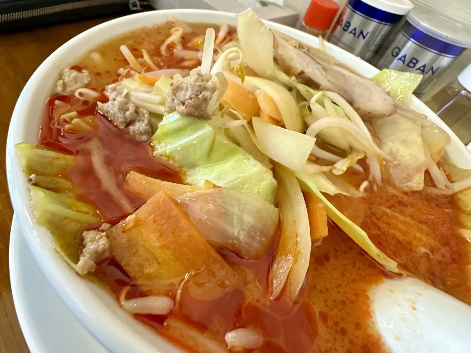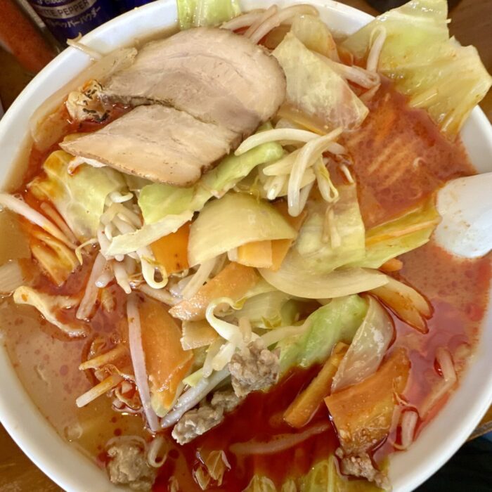 味噌ラーメン推しに生まれ変わって2年弱、その現在地を測るべくオーダー【辛味噌ラーメン・ヤサイ増し】税込1,180円。