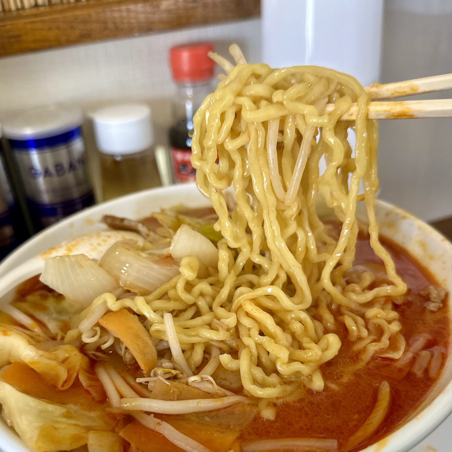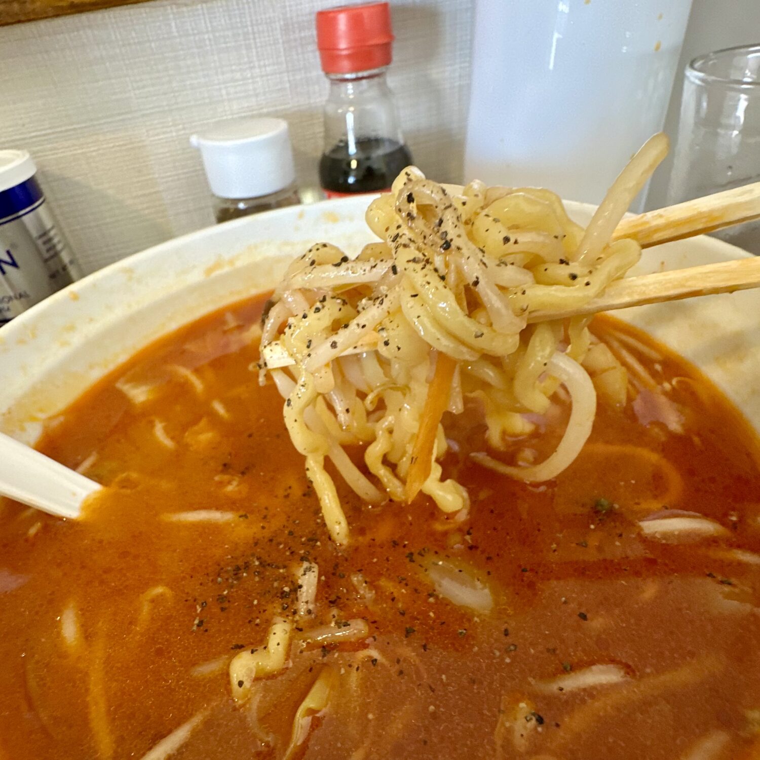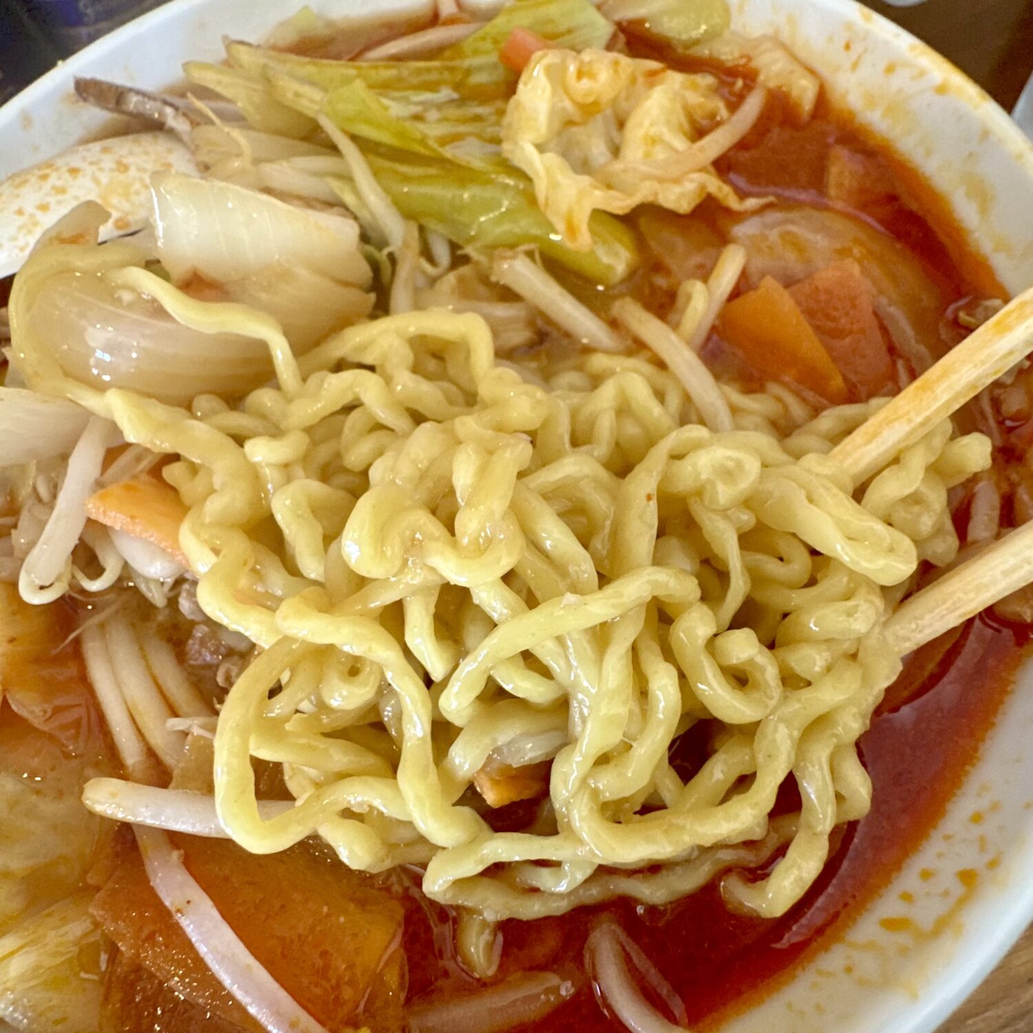 んでこの麺、辛ジョッパなスープともビダリの相性で個人的にもうすっごい良きღ(・ェ・o)