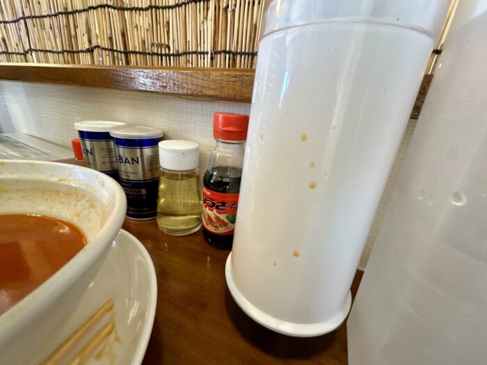 味噌だから一味でしょー、とはならないのがハイボ流、あくまである程度食べ進めた上で総合的に何入れるか考えた結果のブラックペッパー