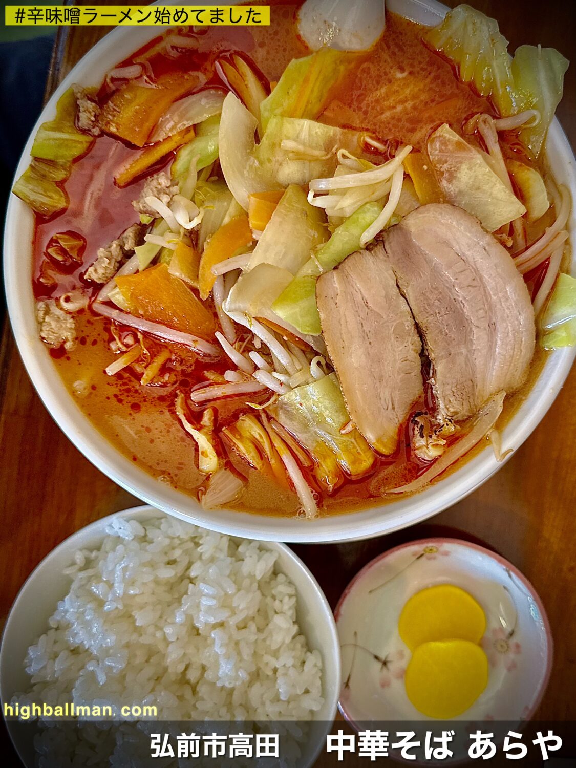 あらや 中華そば あらや 弘前グルメ 弘前ラーメン 弘前市食べ歩き 弘前辛みそ 辛みそ 辛みそヤサイ増し 辛味噌ラーメン 辛味噌ラーメン始めてました