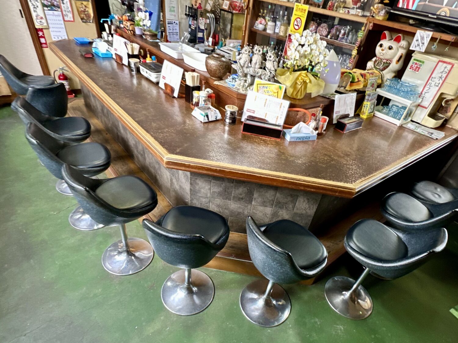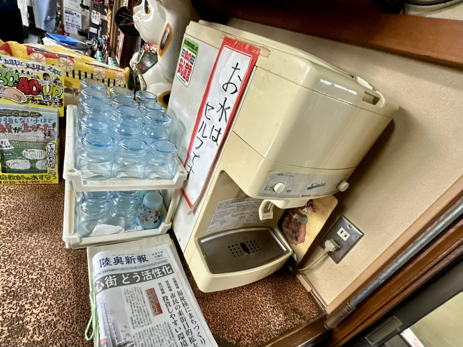これいづがら貼ってらんずやぁ、な壁ポスターや、えっこれネズミ?いや猫か、な謎キャラグッズ、そしてやたらと近い距離感接客。
