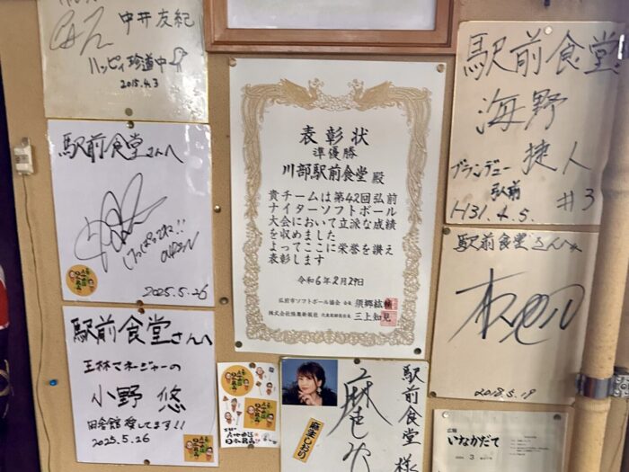サインもあればダルマもあって、しかも駅前食堂として参加したソフトボール大会で準優勝してる事実なんて最強レベル