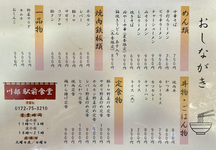 と、そんな駅前食堂はサゲッコありの焼肉ありの昼夜営業体制、しかも奥羽本線と五能線が乗り入れる川部駅の徒歩圏内、