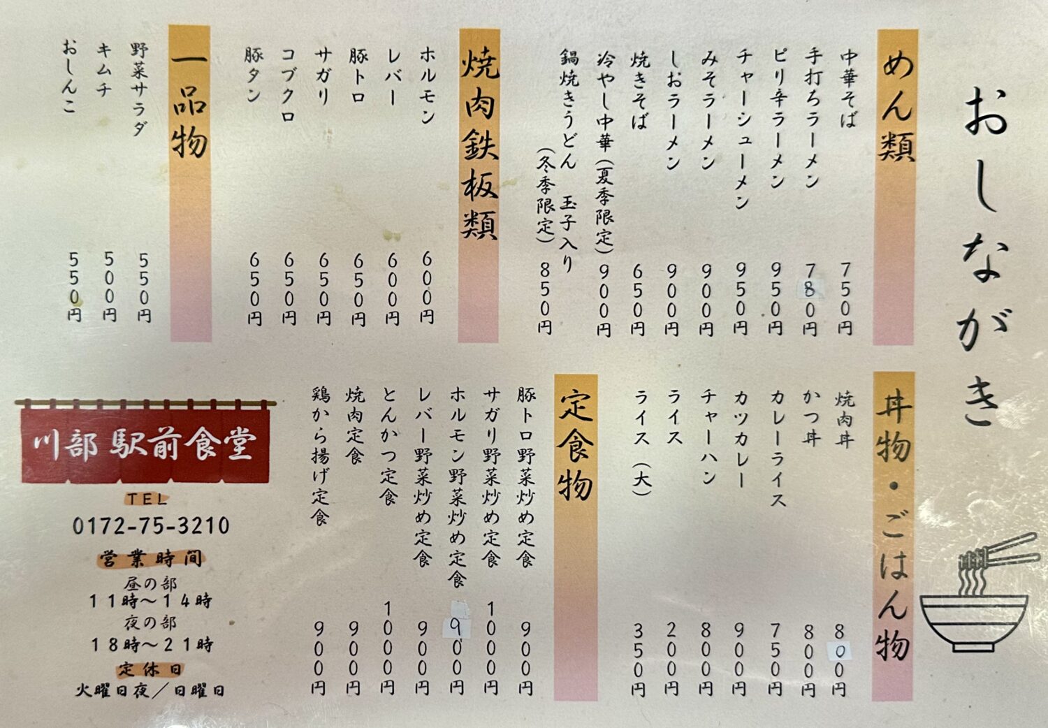 レトロ気分に身を任せ、やってきたのは田舎館村川部駅からほど近く【駅前食堂】。