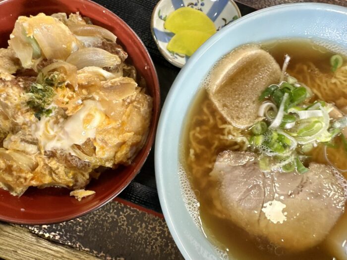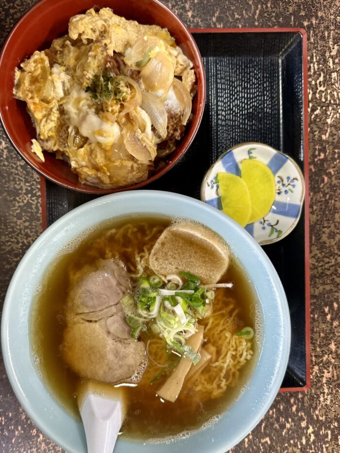 来る客くる客みんながお店と顔なじみ、そんな雰囲気たっぷりの中で【かつ丼】税込800円&【中華そば】税込750円のWオーダーをブッかます。