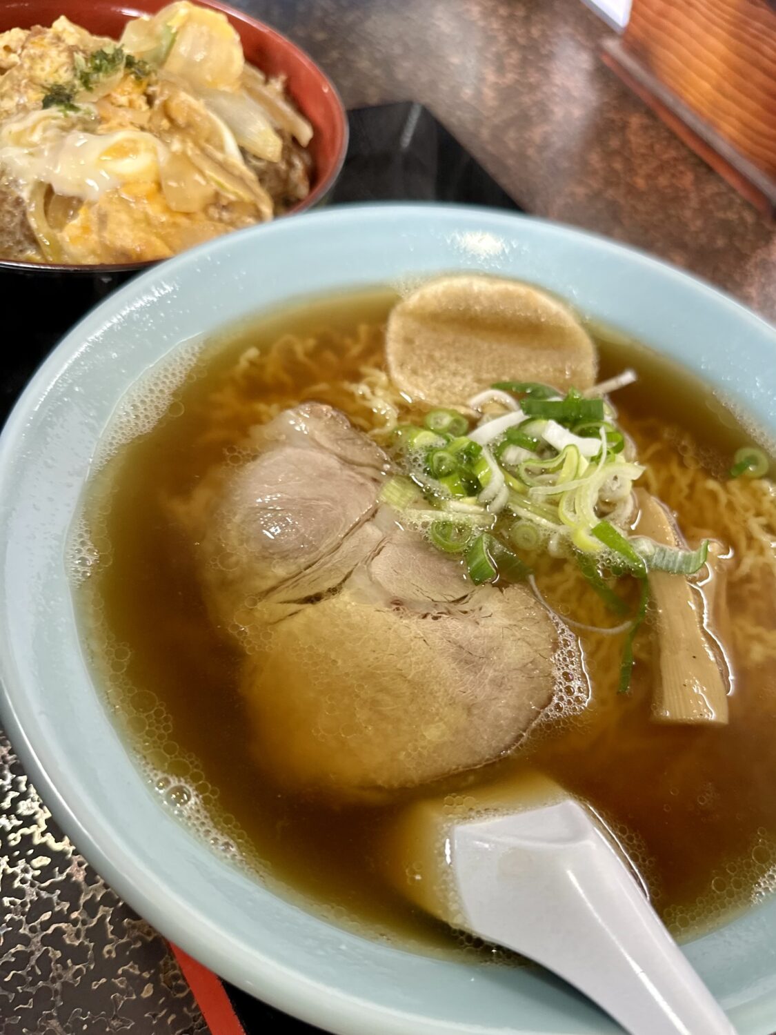 レンゲ使って丼喰えるのも麺類との単品コンボならでは、程よい汁ダク感をまんますくって喰えるのはかなり大きい