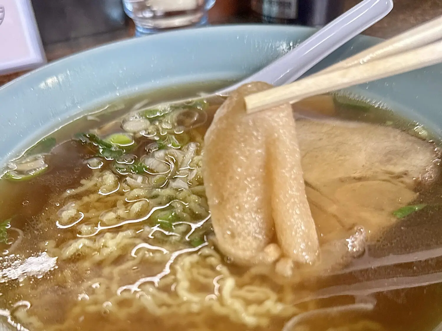 乗せ具はネギメンマにチャーシューとお麩、つまりおっふ、お麩、オブジョイトイ