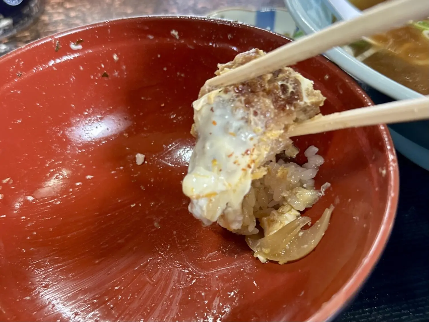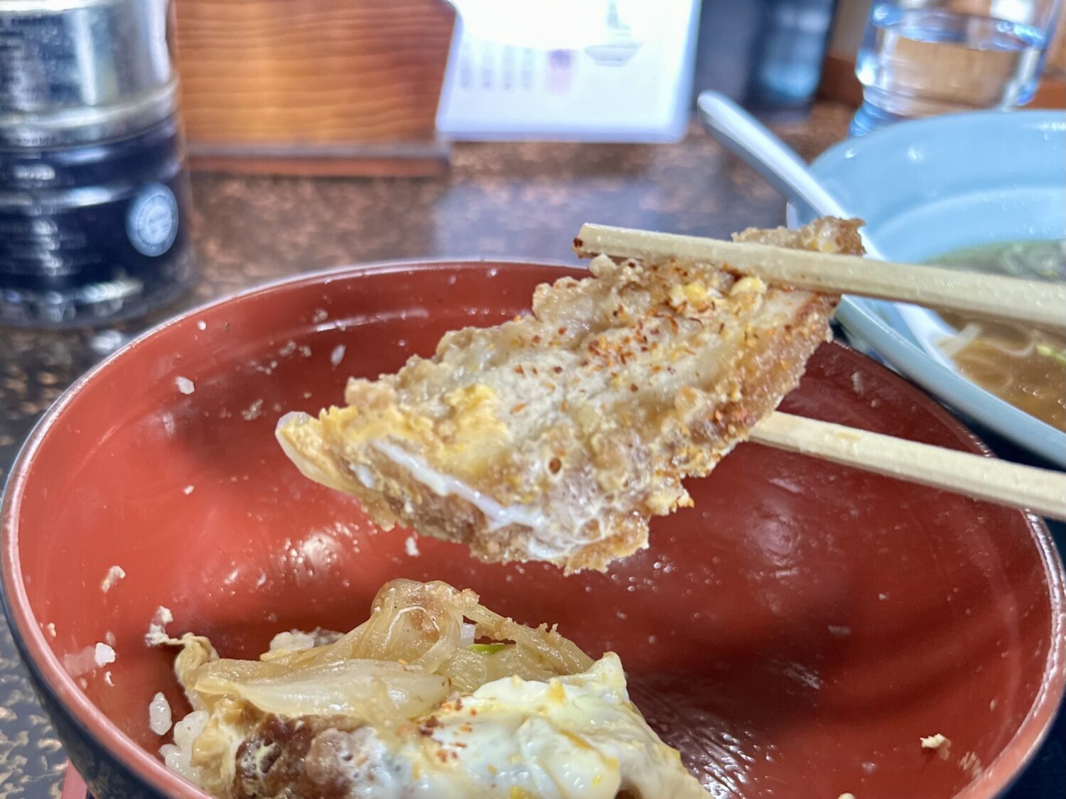 そんなチリッチリ中華よりも何よりも、この日一番驚かされたのがかつ丼のその美味さ