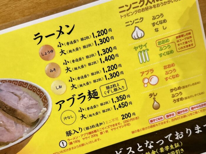 • 青森市桜川【博多中華蕎麦ろびん】の夜ラー限定メニュー「三郎」、その”オール3”を登る