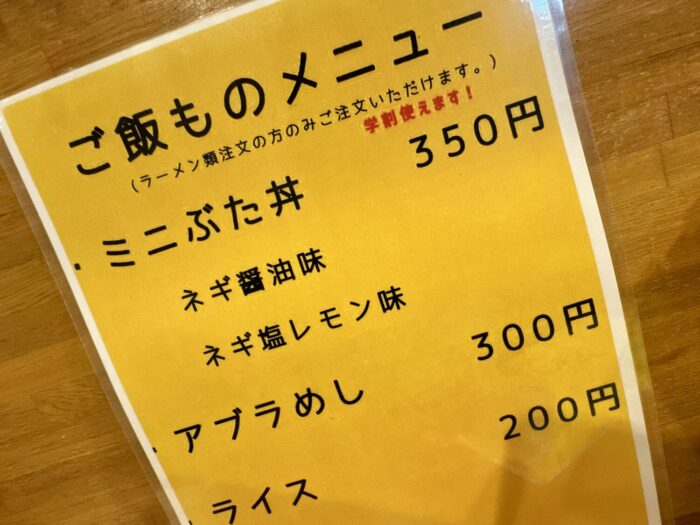 「ミニぶた丼(ネギ塩レモン味) ¥350」