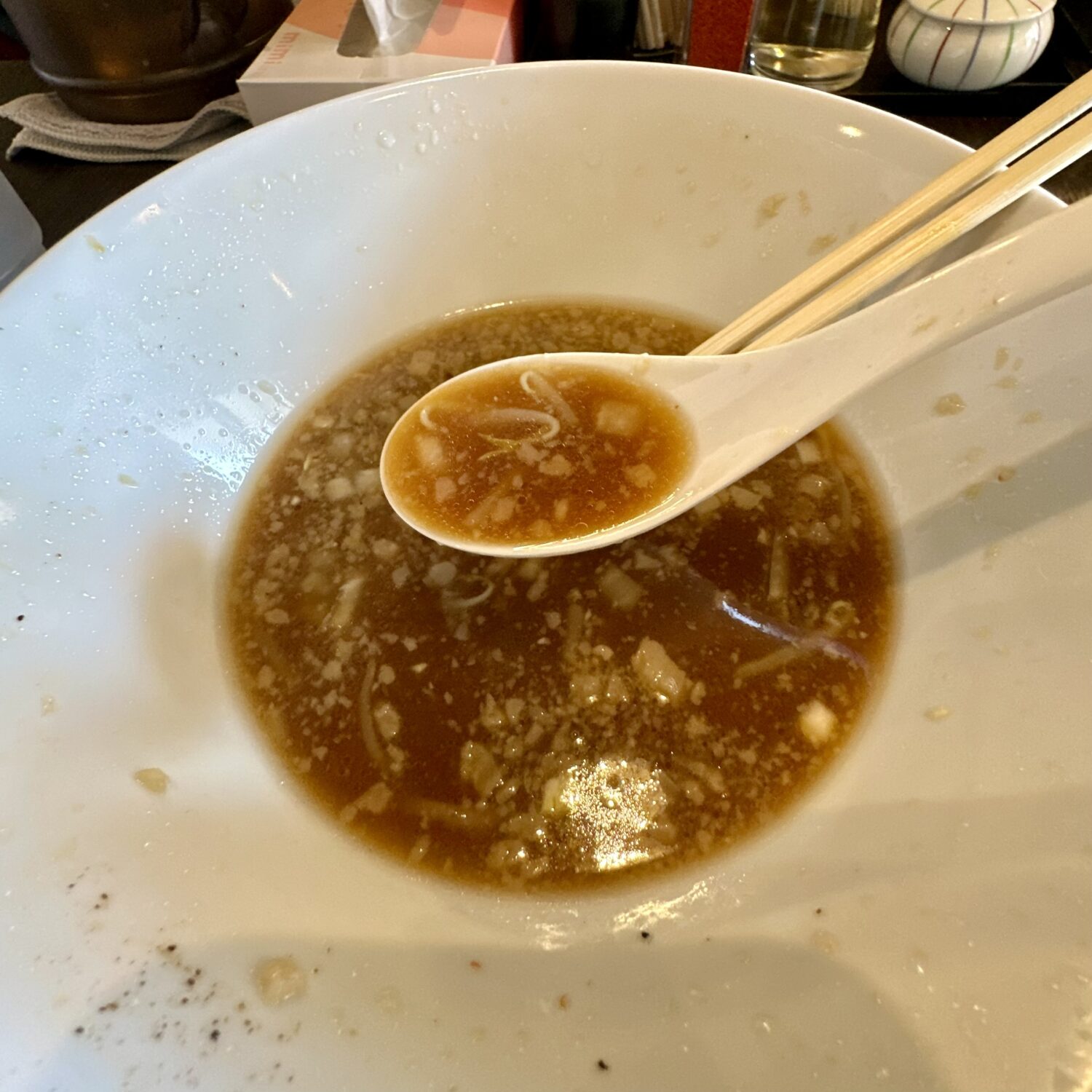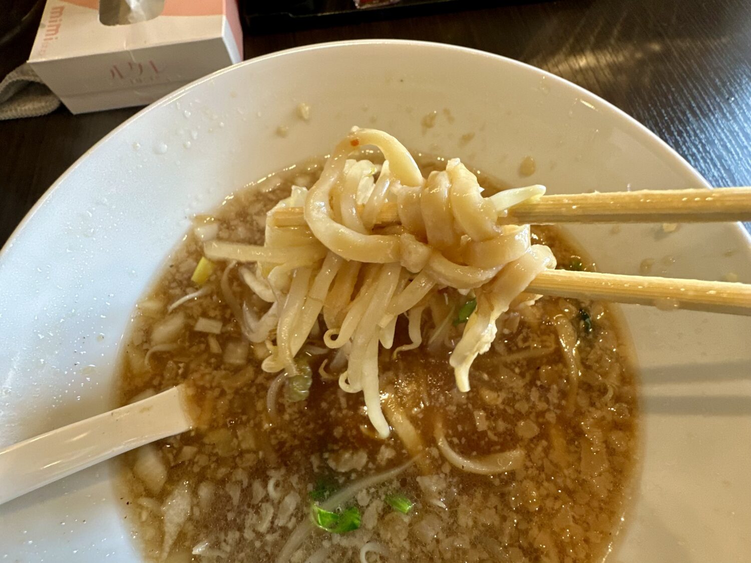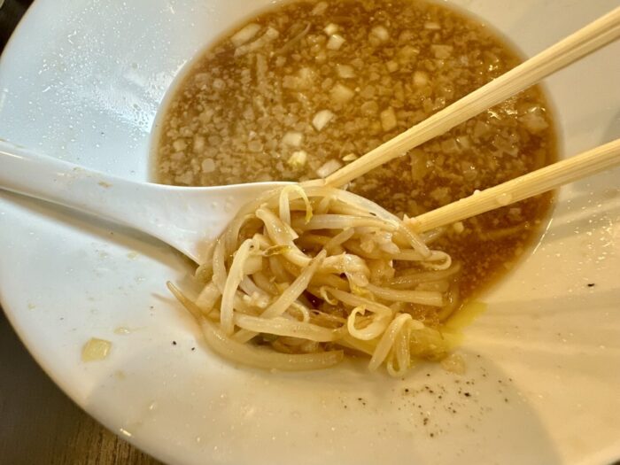 しかしこれがなかなかどうしてめっちゃ美味い、ヌルッテカの奥からやってくるザラつきテイストがスープを絡めてすごく良い