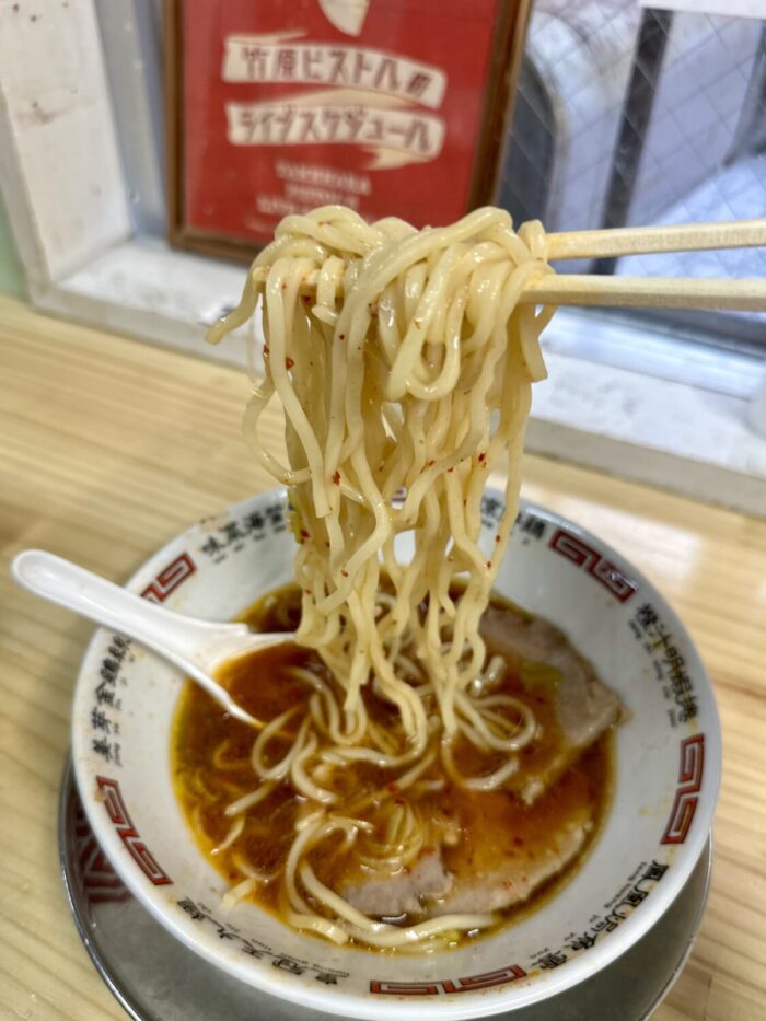 麺はクニクニチュルチュルの多加水タイプ