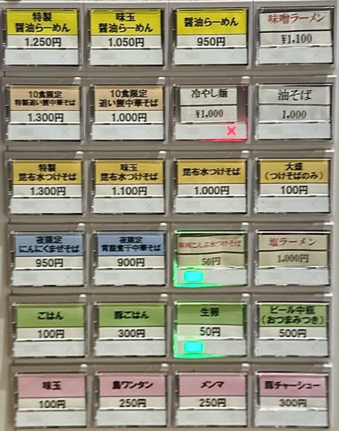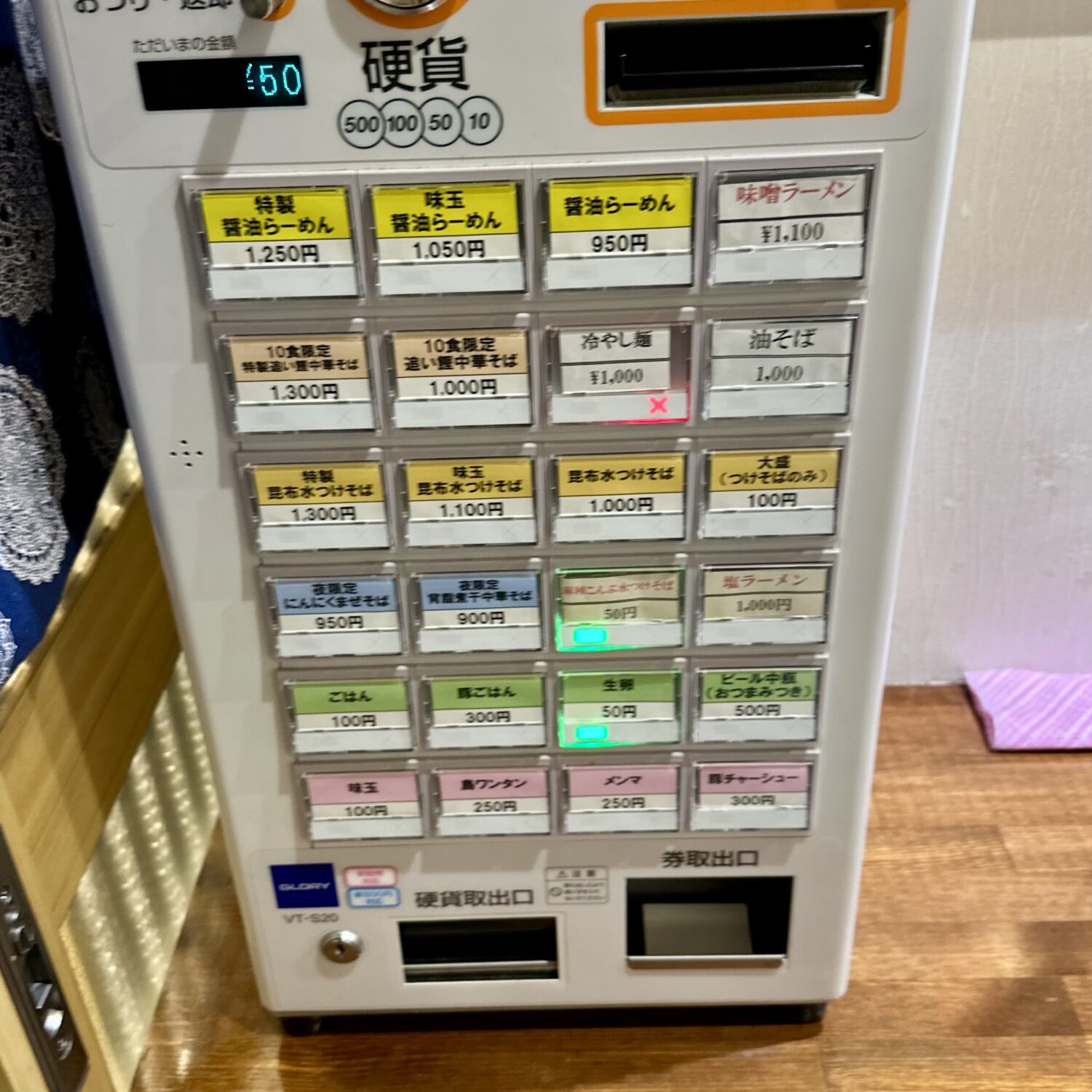 まずは入ってすぐ左手の券売機とご対面、ちなみに近くに画像つき紹介POPとかはないからある程度の想像力が問われる場面