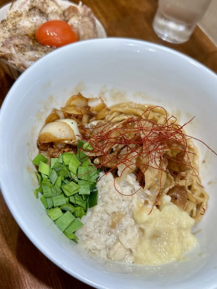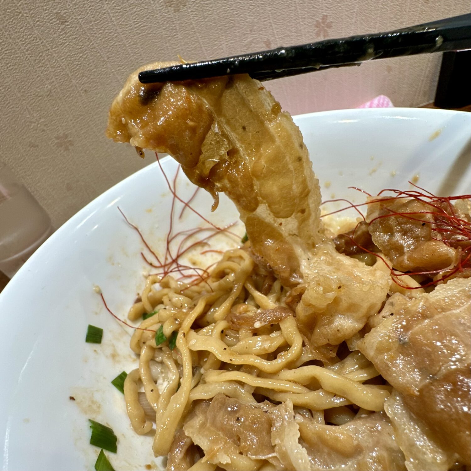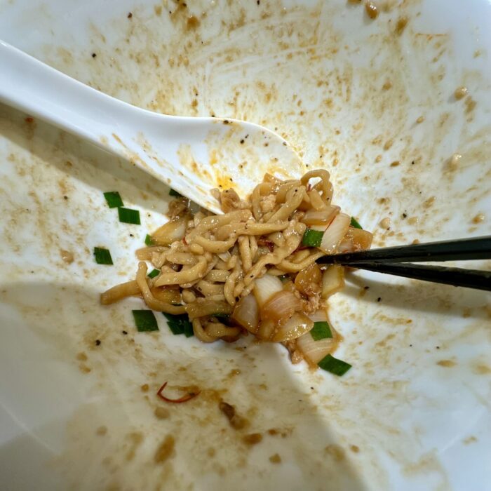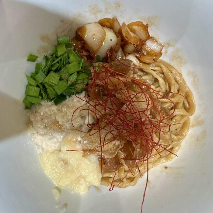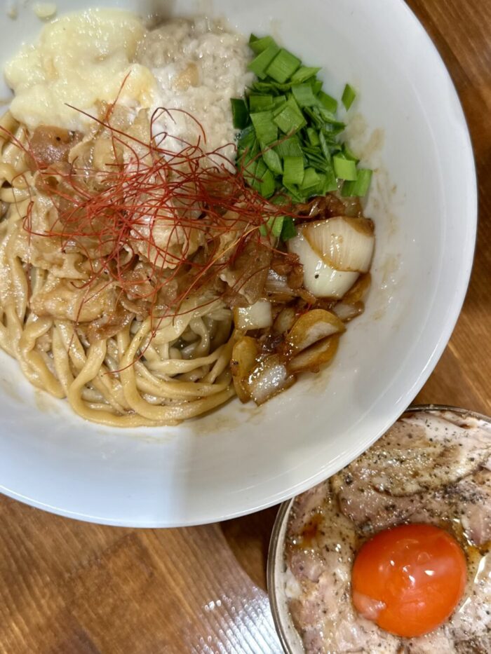 裏と表でまったく違う表情みせる麺屋落合のにんにくまぜそば、食べれるタイプの両面宿儺