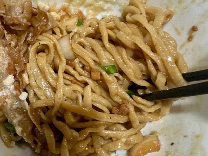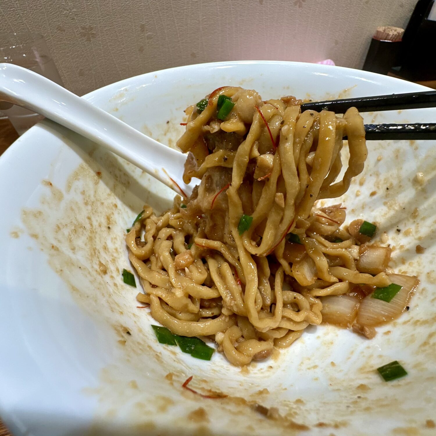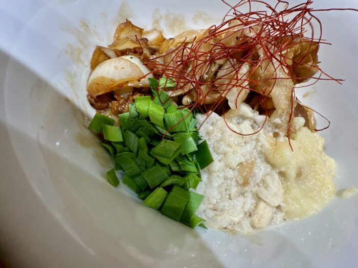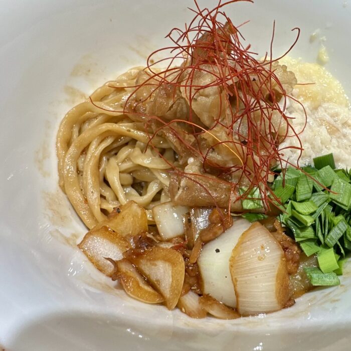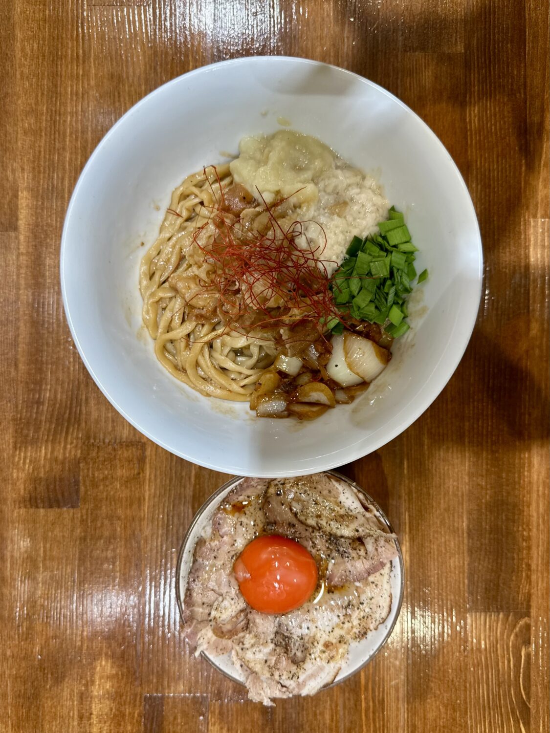 裏と表でまったく違う表情みせる麺屋落合のにんにくまぜそば、食べれるタイプの両面宿儺