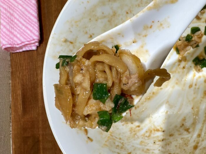 そんなカーボの奴隷ハイボールマン、まぜそば最終盤のこの局面であの”禁じ手”が頭に浮かぶ(´⊙ω⊙`≡´⊙ω⊙`)