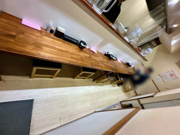 カウンター席と小上がり席で構成される店内、ワンオペ営業にちょんど良いサイズ感が居心地的にもチョンドイイっていう好例